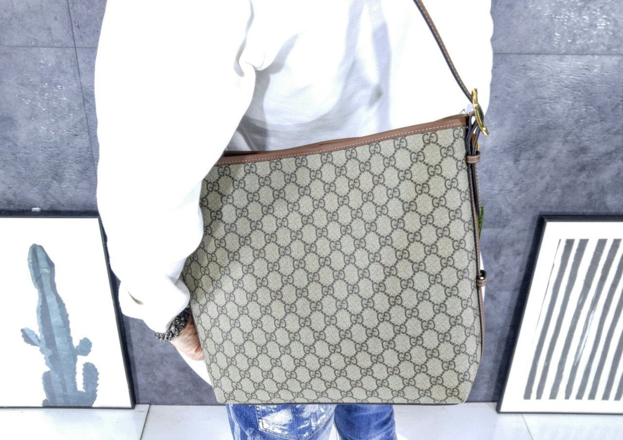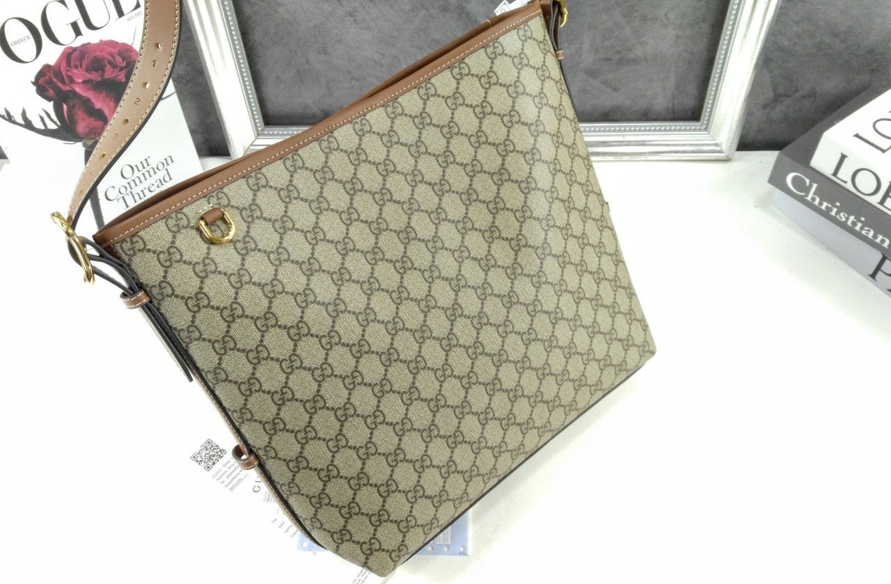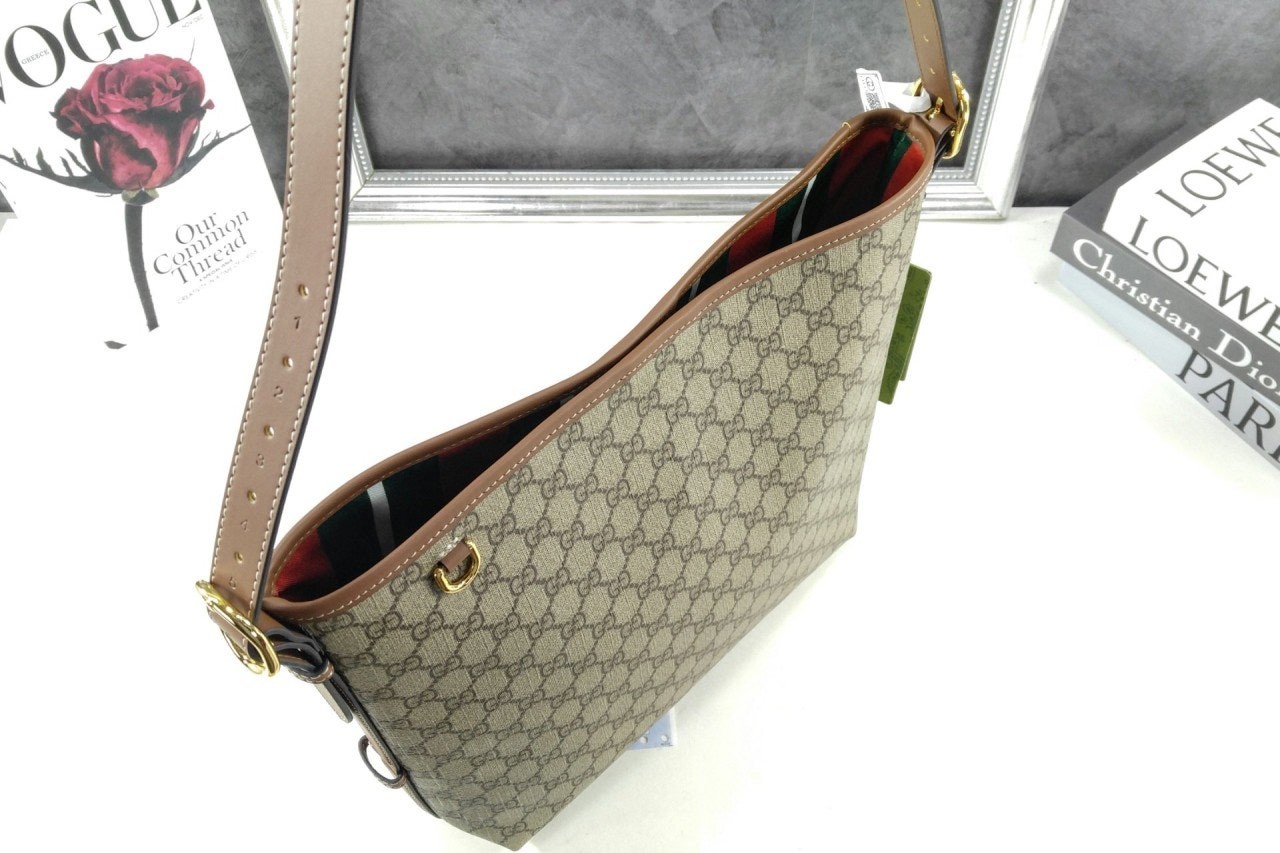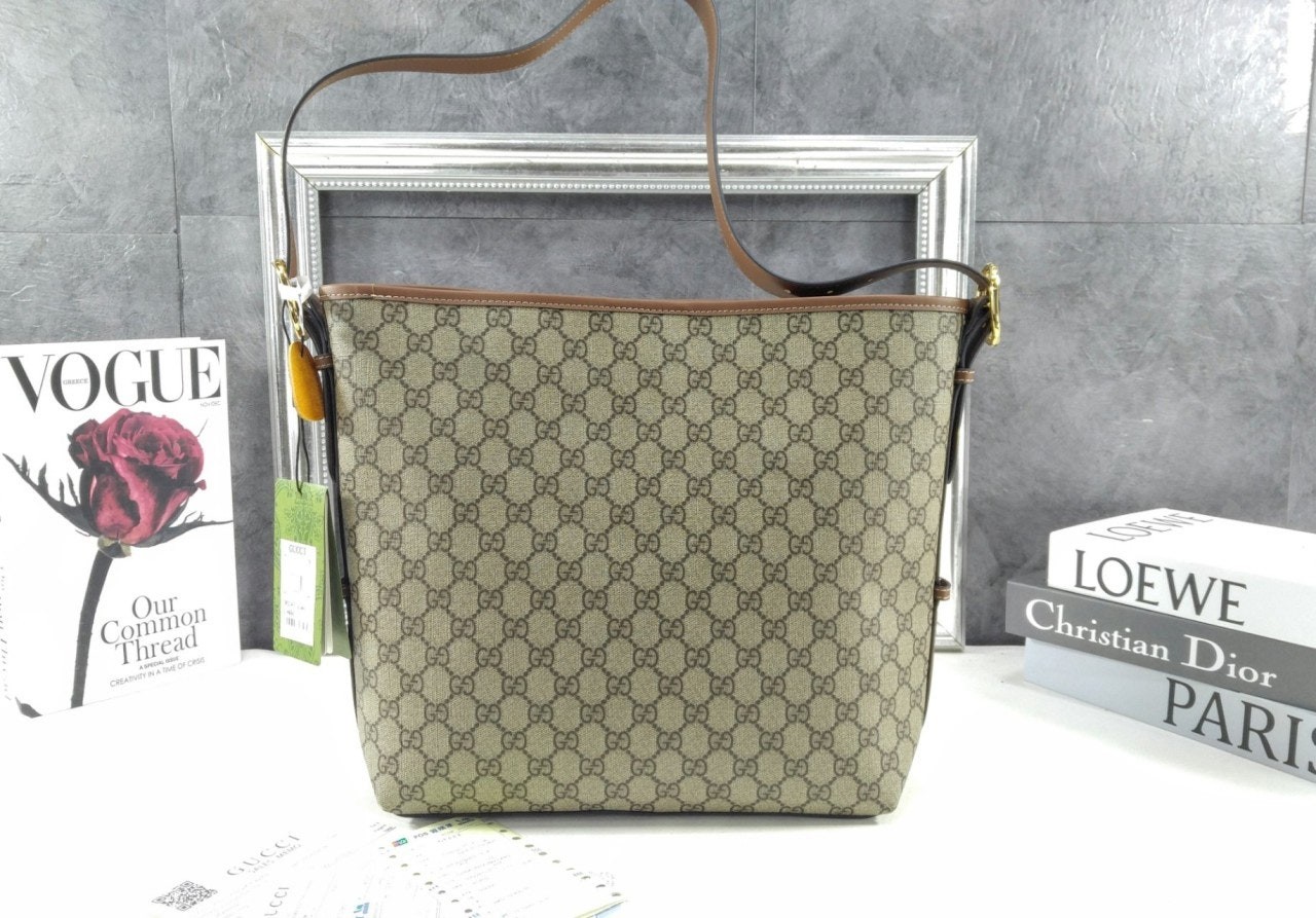 GG 엠블럼 컬렉션은 하우스의 우아함과 장인 정신의 역사를 재해석합니다. 웹(Web) 코튼 안감, 내부 컴파트먼트와 기능성 디자인이 특징인 버킷 실루엣.