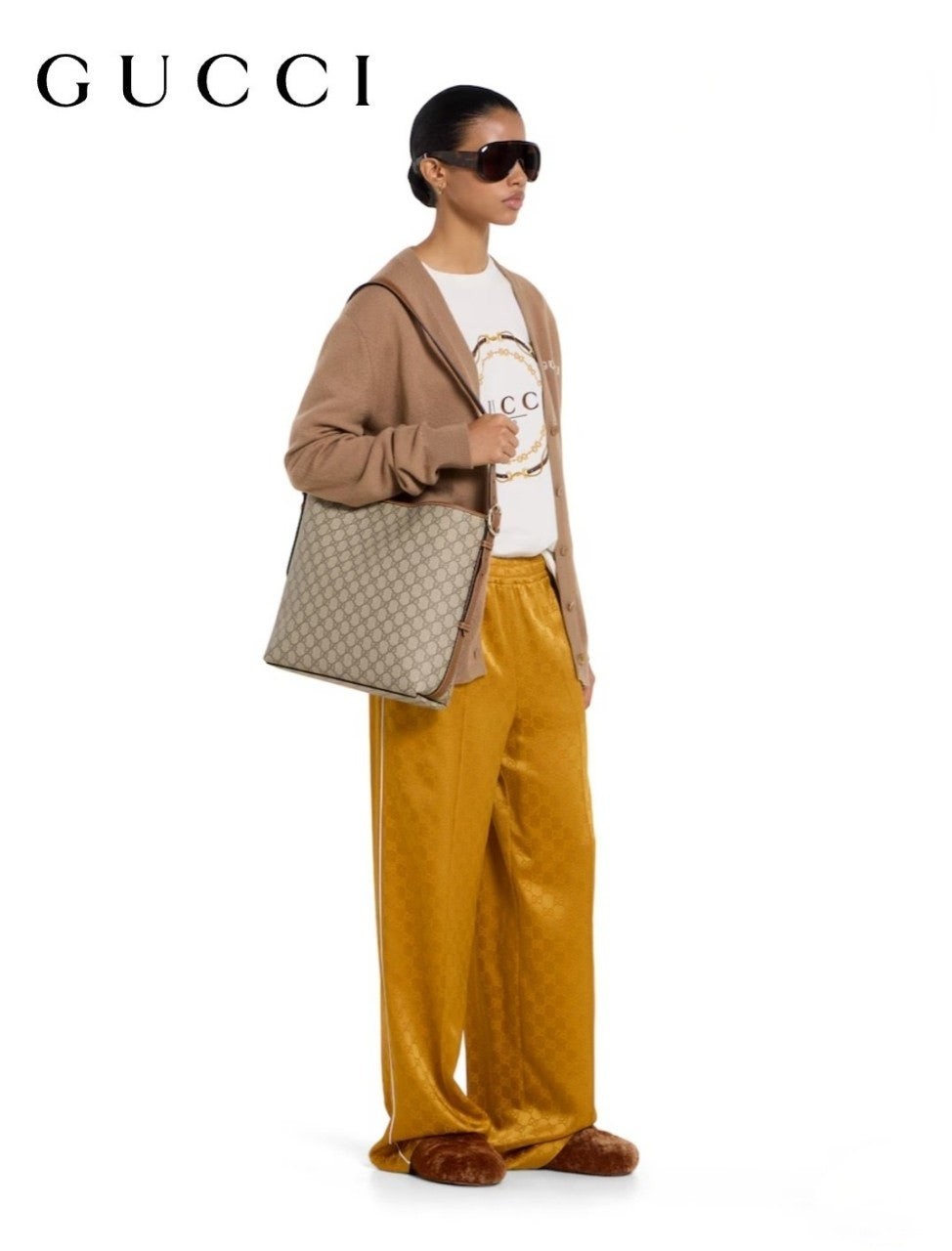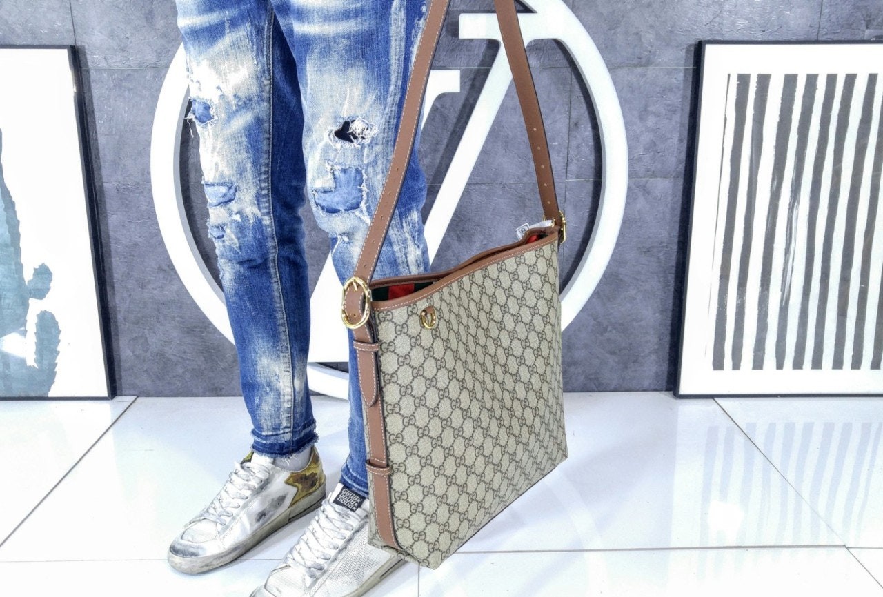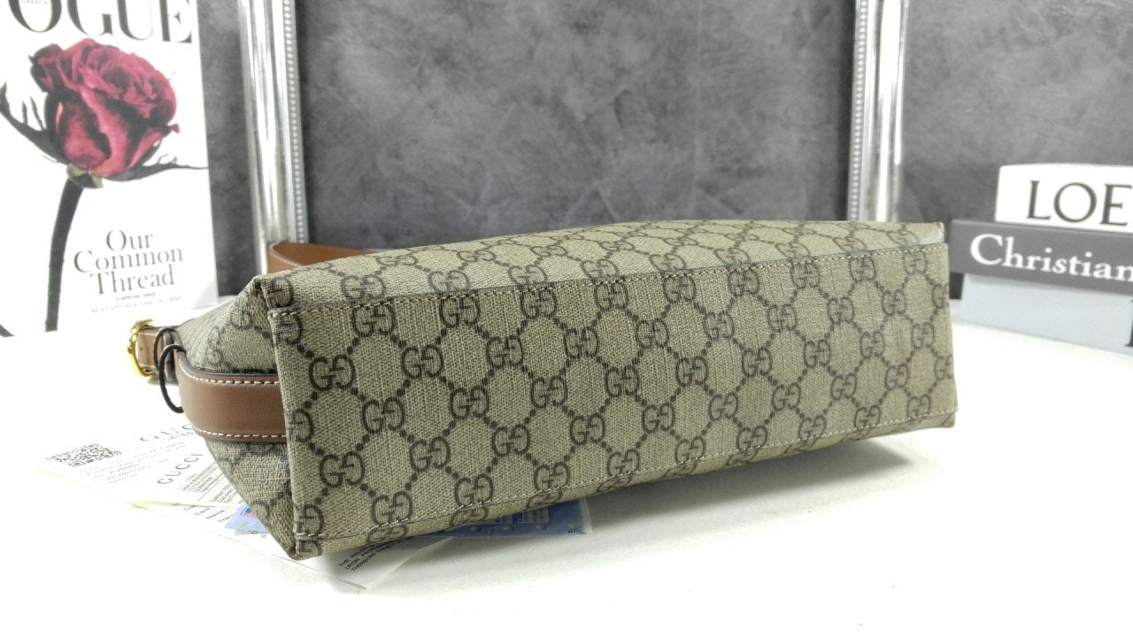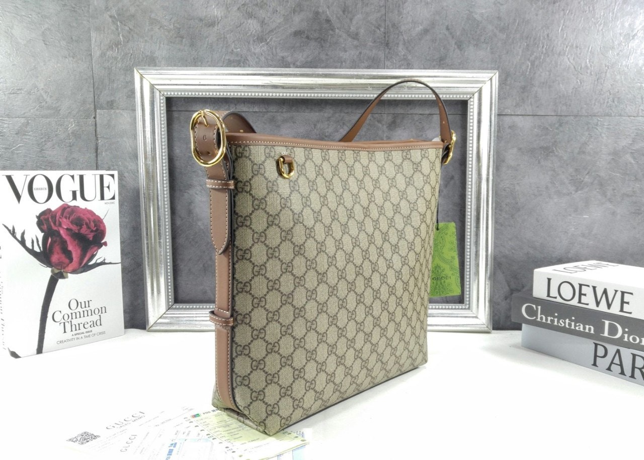 GG 엠블럼 컬렉션은 하우스의 우아함과 장인 정신의 역사를 재해석합니다. 웹(Web) 코튼 안감, 내부 컴파트먼트와 기능성 디자인이 특징인 버킷 실루엣.