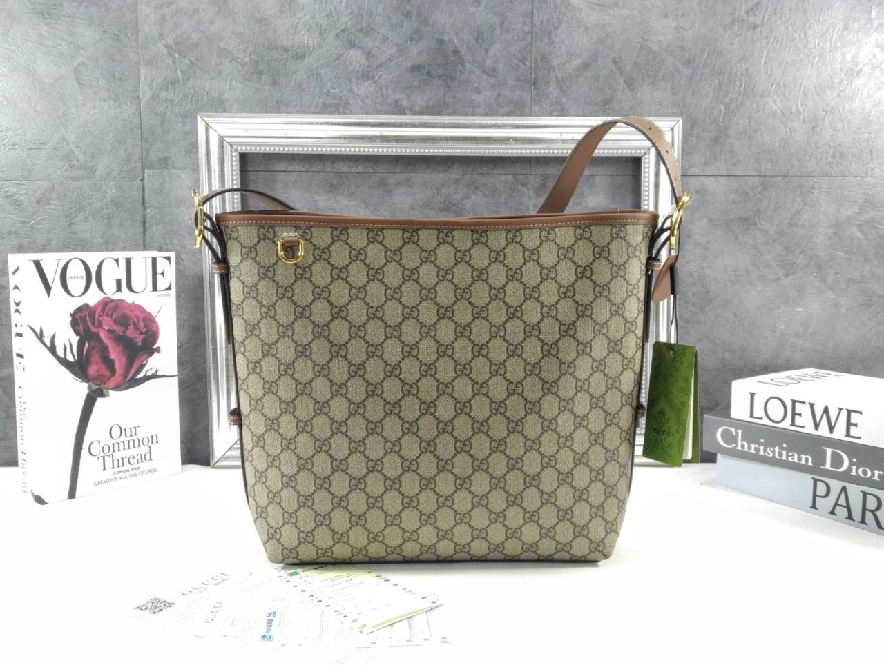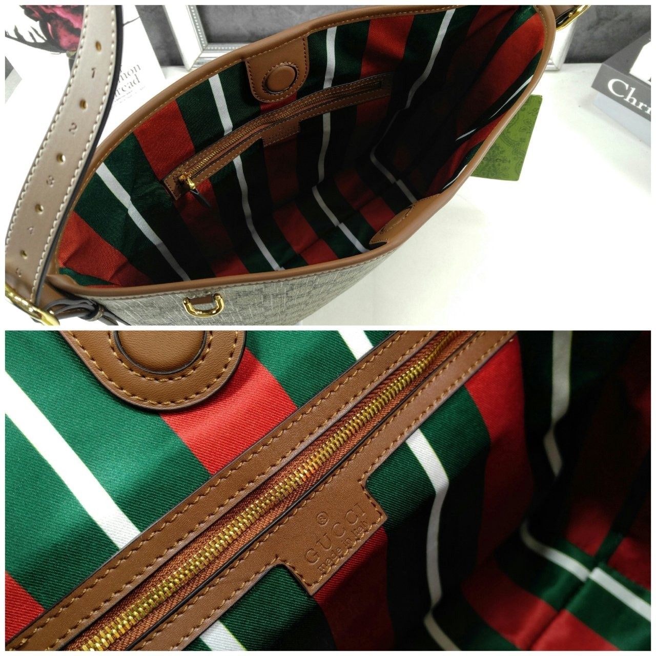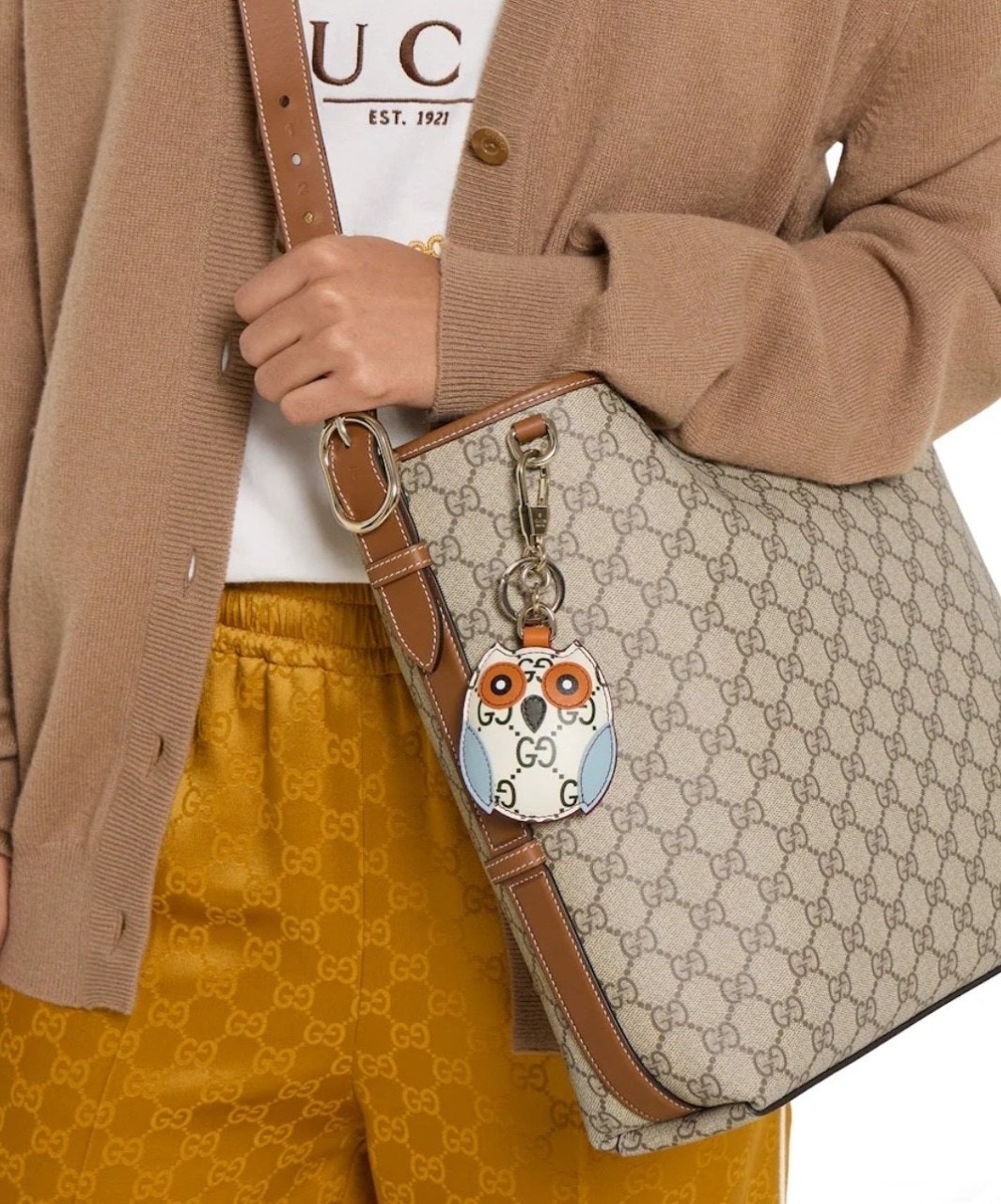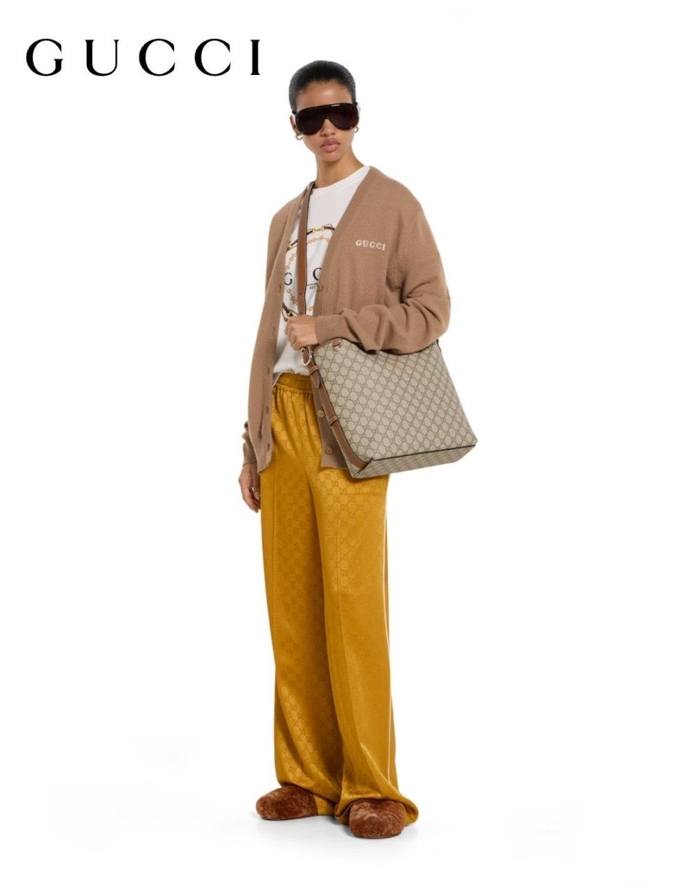 GG 엠블럼 컬렉션은 하우스의 우아함과 장인 정신의 역사를 재해석합니다. 웹(Web) 코튼 안감, 내부 컴파트먼트와 기능성 디자인이 특징인 버킷 실루엣.
