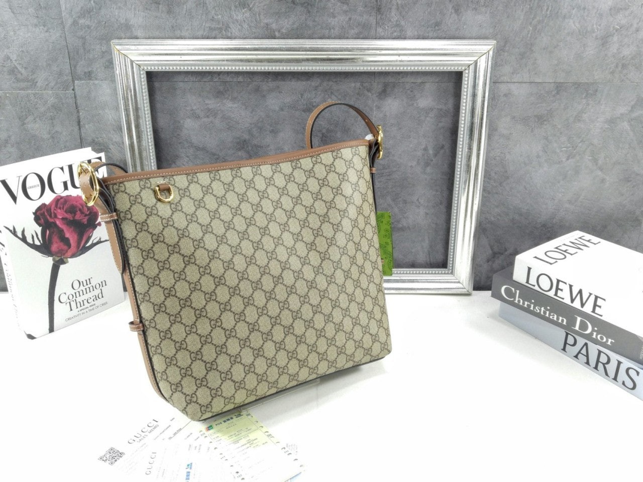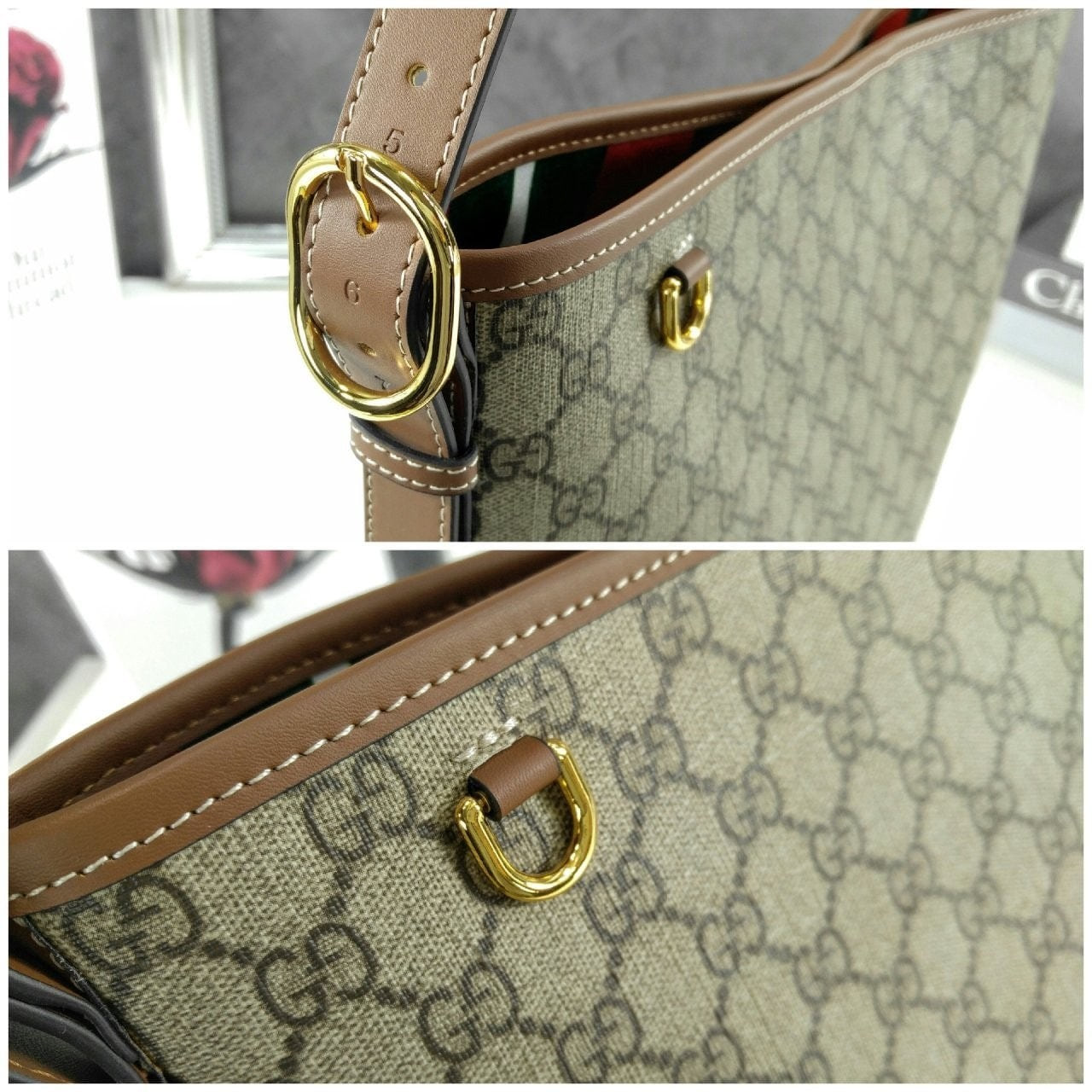 베이지/다크 브라운 GG 모노그램 코팅 소재
