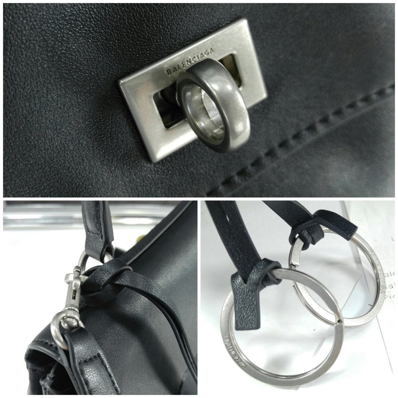 원 참 디테일 및 블랙 유즈드 스무드 카프스킨 소재의 로데오 미디엄 핸드백, 빈티지 실버 장식