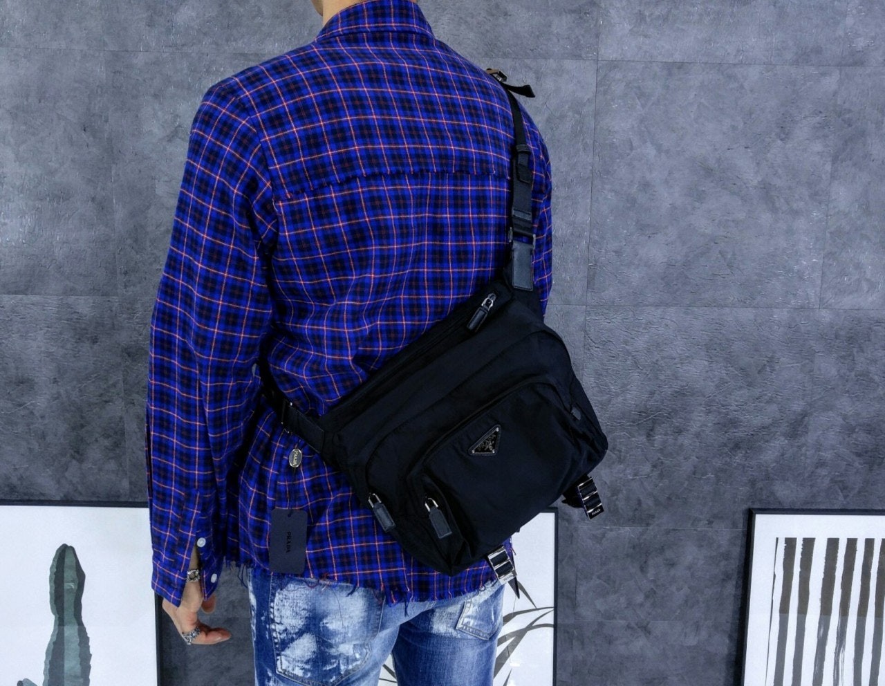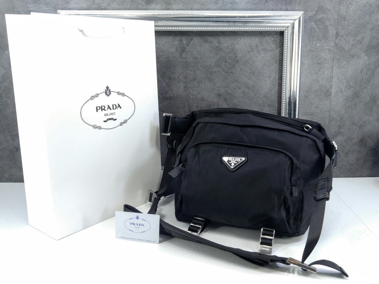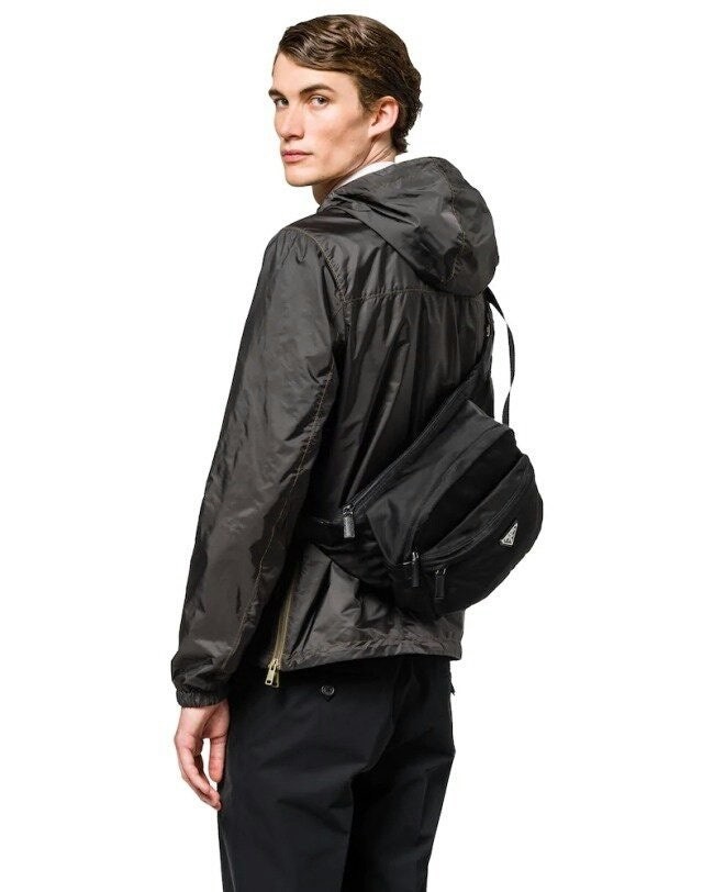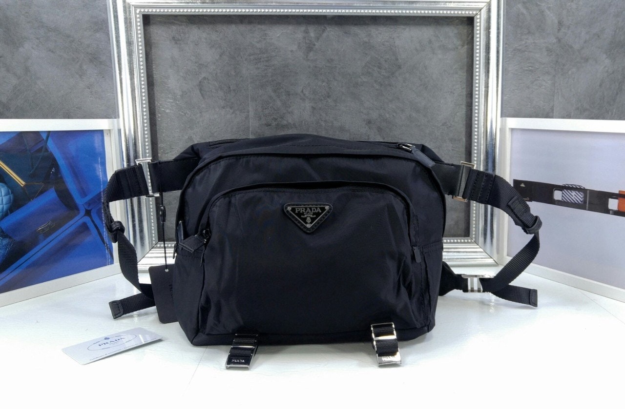 • 프** 바이커백 힙색 바이크백 Nylon and Saffiano Leather Bag