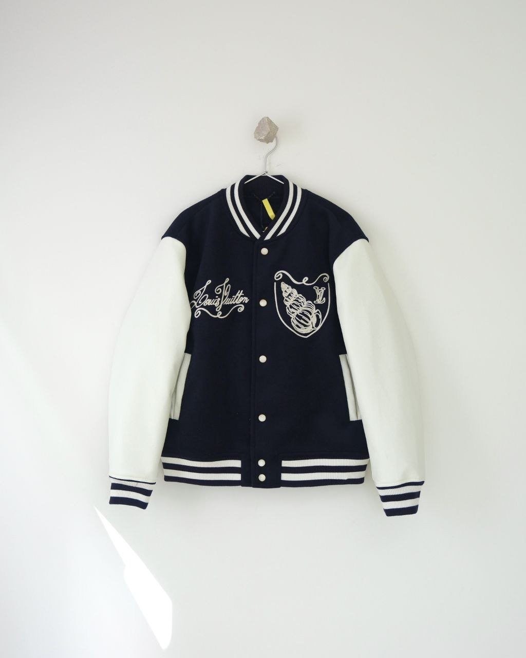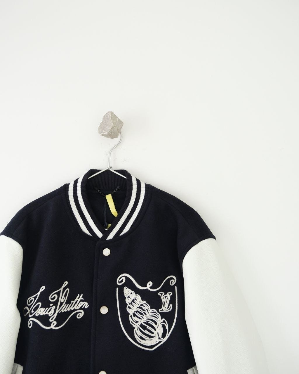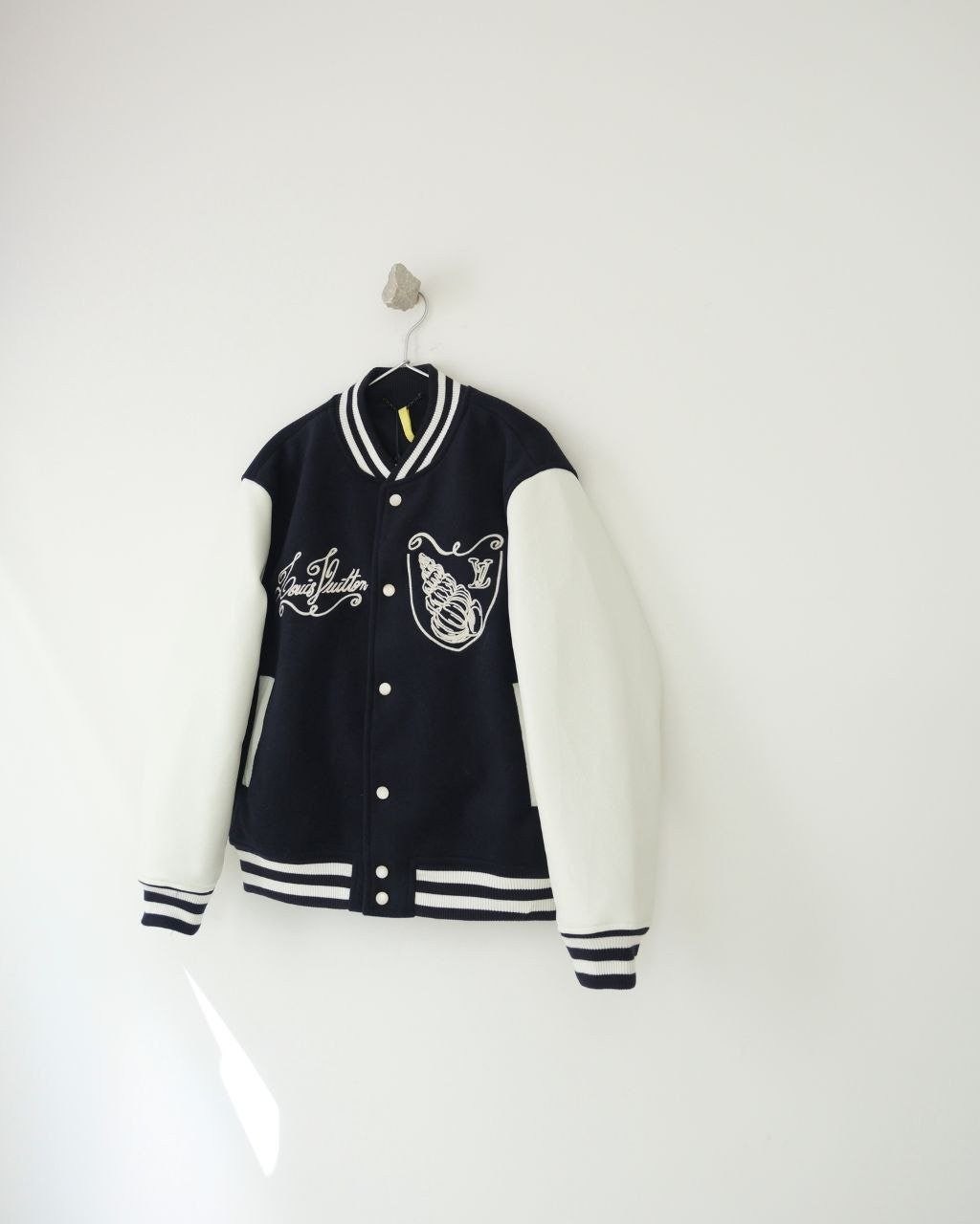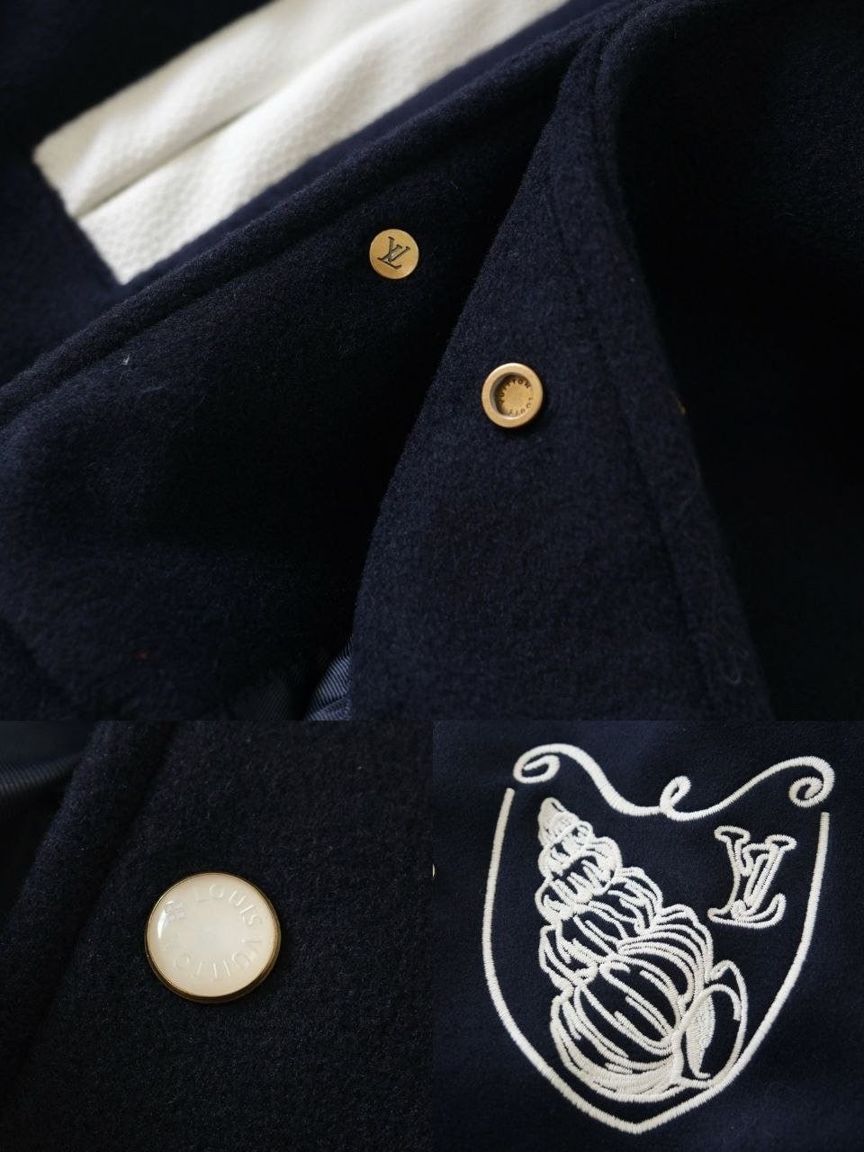 LV 24-25 시즌 시쉘 자수 로고 바시티 자켓, 고급스러움이 가득한 스타일로 세련되고 상쾌한 항해 시리즈입니다. 주요 로고 자수와 함께 주제 시리즈의 조개와 유사한 매듭 패턴이 어우러져 있으며, 깊은 바다 블루의 메인 톤에 흰색 가죽 소매의 대조가 정말 패셔너블하고 착용 시 매우 젊고 활기찬 느낌을 줍니다.
