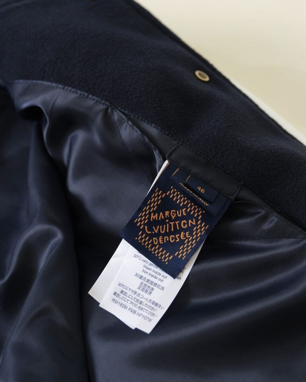 원단은 7판의 색상을 맞추는 데 반 달 이상 소요되었으며, 이 제품은 세겹의 원단이 사용됩니다. 일반적인 바시티 자켓은 보통 겉감과 안감의 두 겹으로 이루어져 있지만, ZP 패턴의 맞춰 겉감과 안감 사이에 한 겹의 보강재를 추가하여 전체적으로 더 좋은 핏을 유지할 수 있게 했습니다.