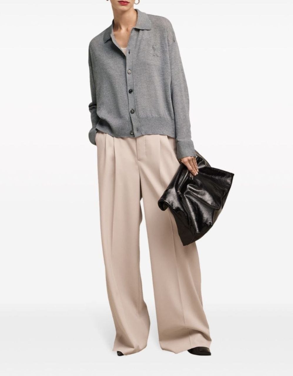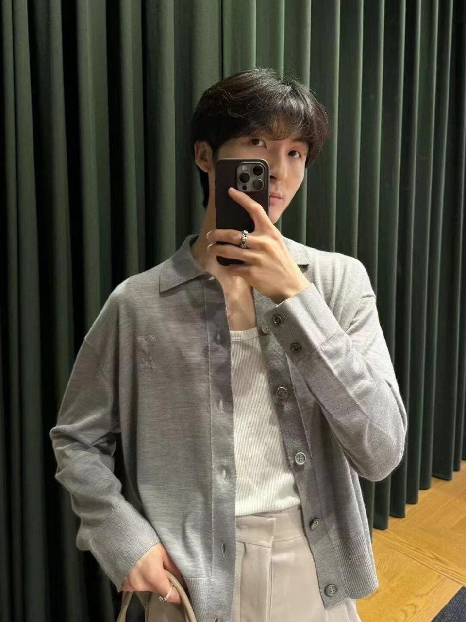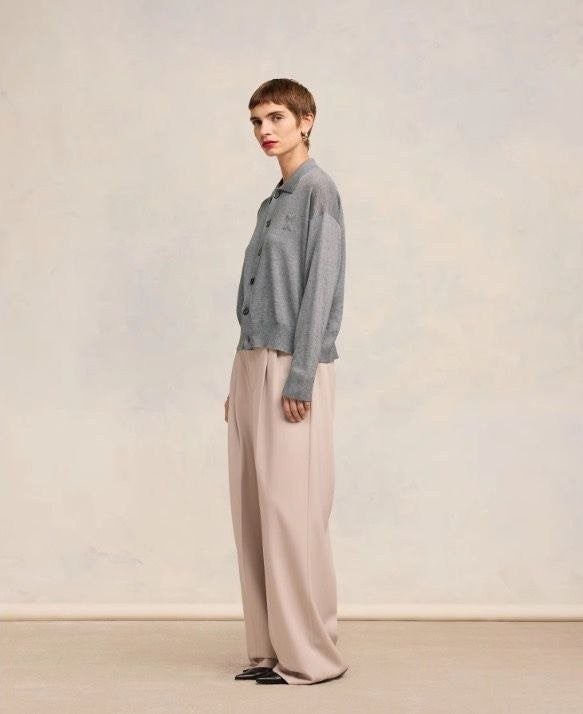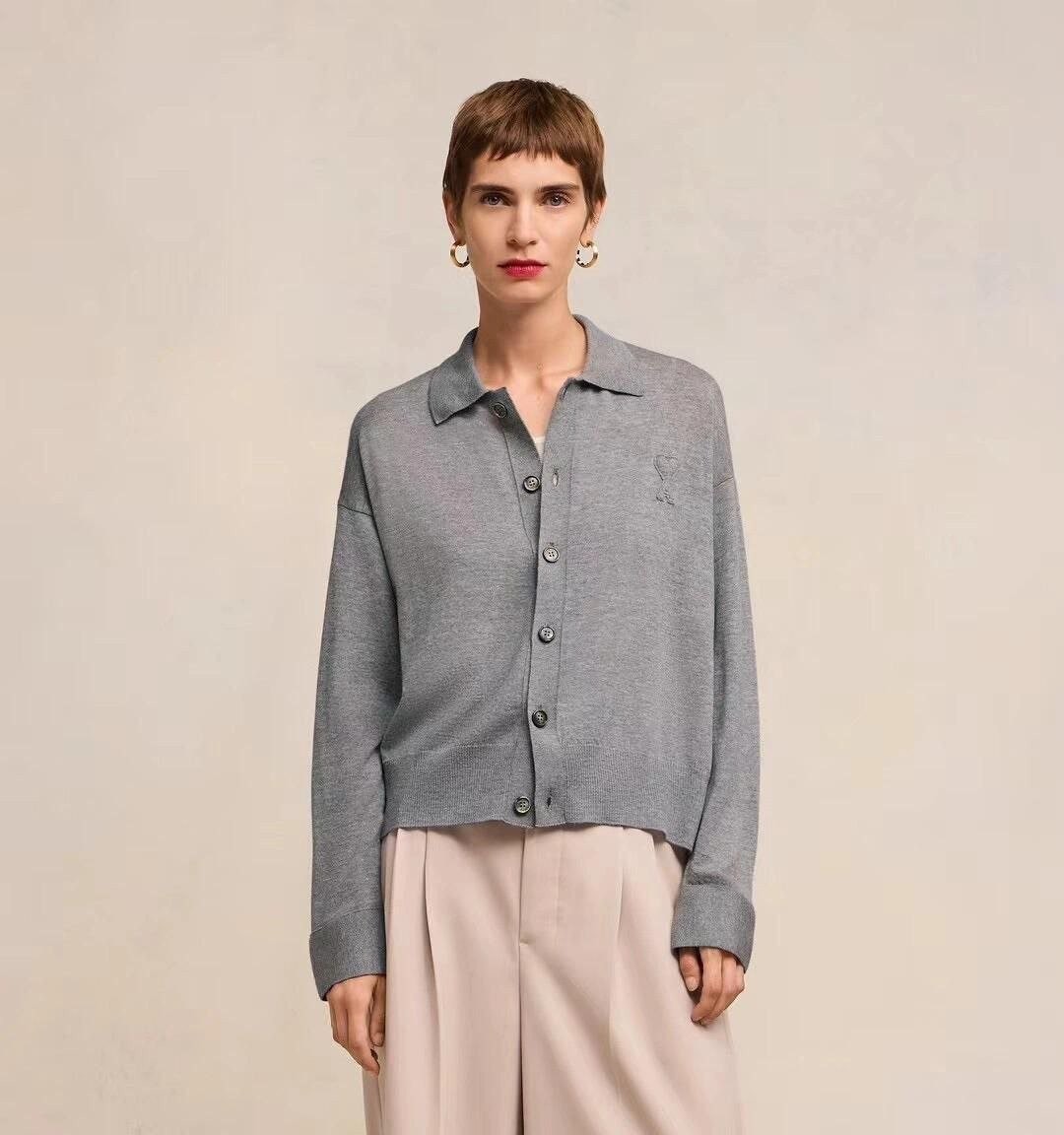 •24~25시즌 양모 버튼 오픈 카라 니트 스웨터, ZP 구매후 1:1 맞춤 제작 상품 입니다. 사용된 원단은 100% 양모이며, 가슴 부분에 부조식 자수가 있습니다. 단추와 세 가지 라벨 모두 맞춤 제작되었으며, 일반적인 핏으로 남녀 모두 우아하게 착용할 수 있으며, 가을,겨울,봄 계절에 적합합니다.
