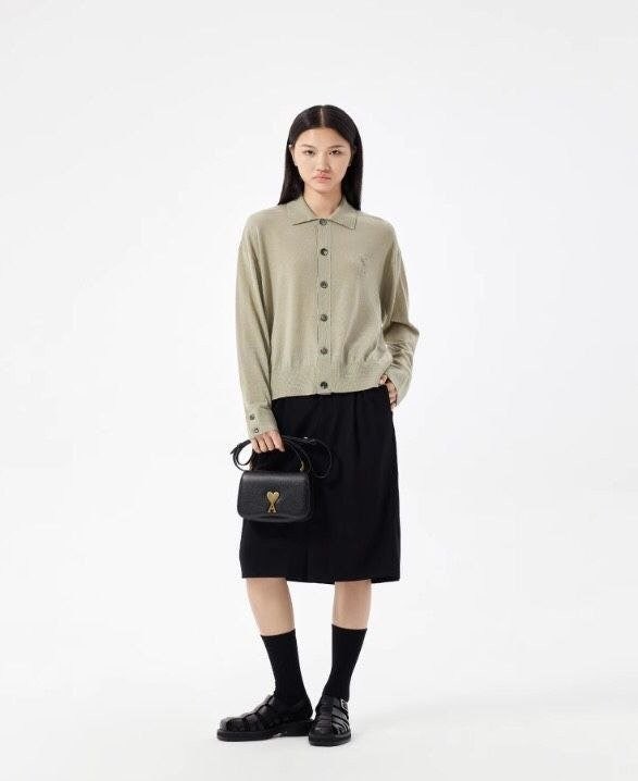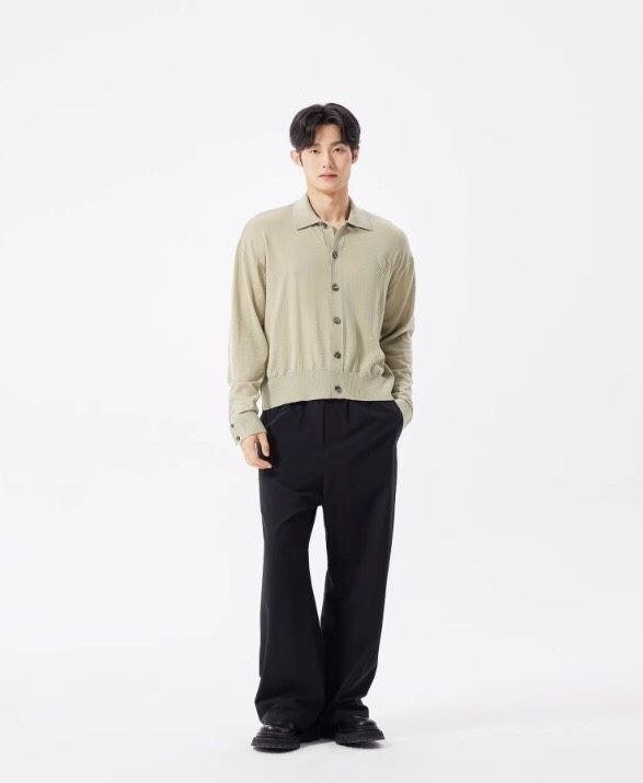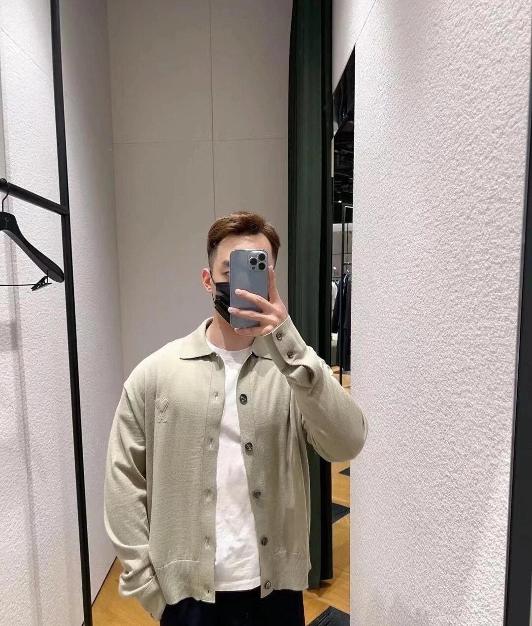 •24~25시즌 양모 버튼 오픈 카라 니트 스웨터, ZP 구매후 1:1 맞춤 제작 상품 입니다. 사용된 원단은 100% 양모이며, 가슴 부분에 부조식 자수가 있습니다. 단추와 세 가지 라벨 모두 맞춤 제작되었으며, 일반적인 핏으로 남녀 모두 우아하게 착용할 수 있으며, 가을,겨울,봄 계절에 적합합니다.