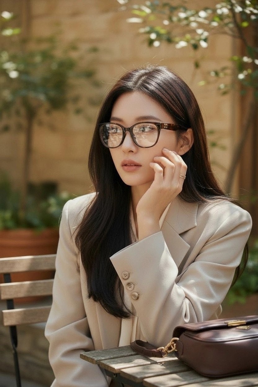 골드컬러의 로고 플레이가 타원형 아세테이트 프레임으로 더욱 고급스러운 효과와 지적이면서 섹시해 보여요