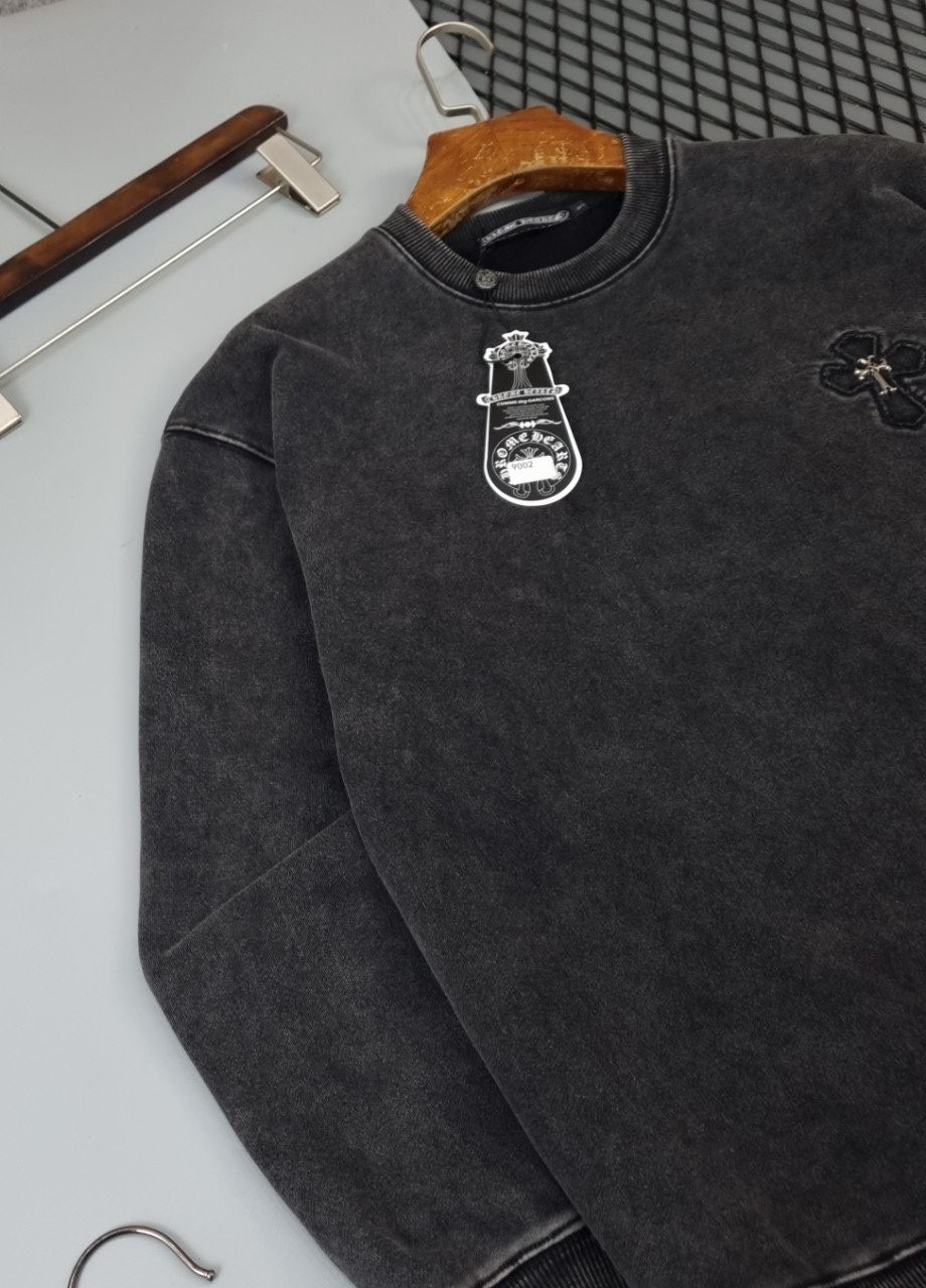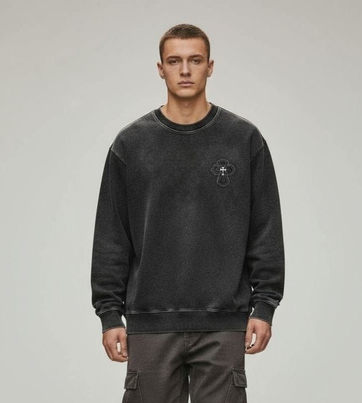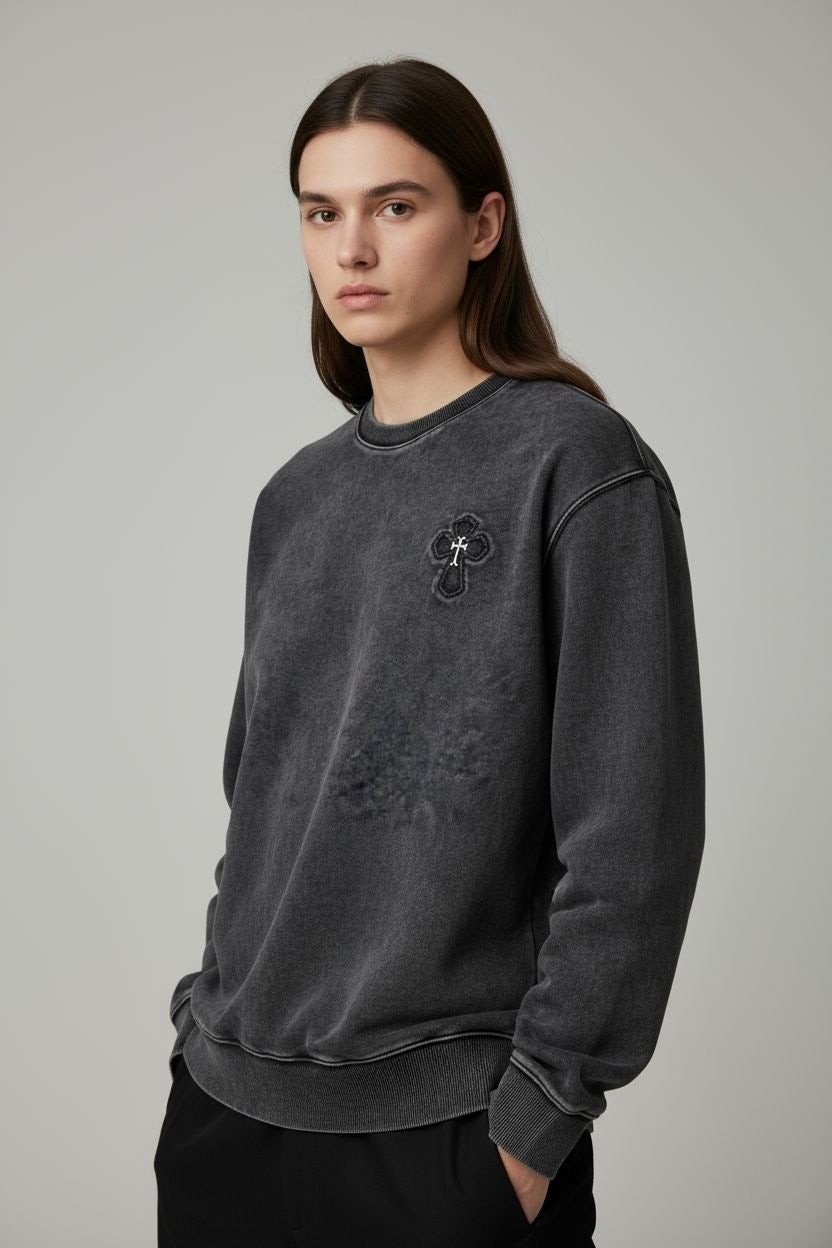 • 크* 십자가 엠보 말발굽패치 피그먼트 워싱 맨투맨수입최고급(남녀공용)