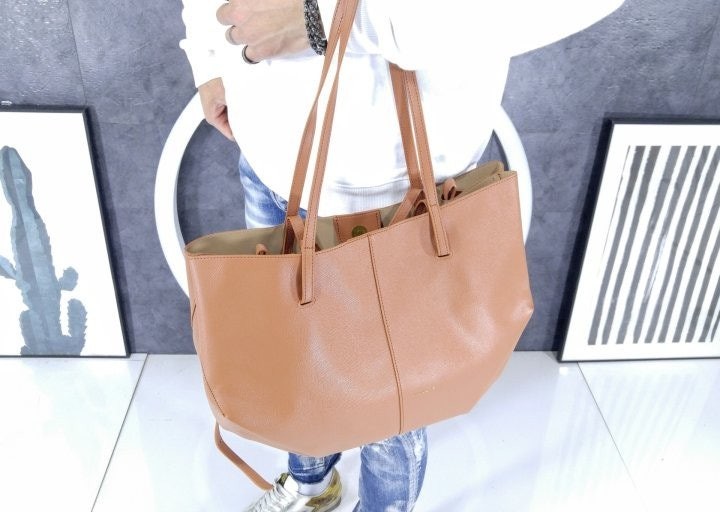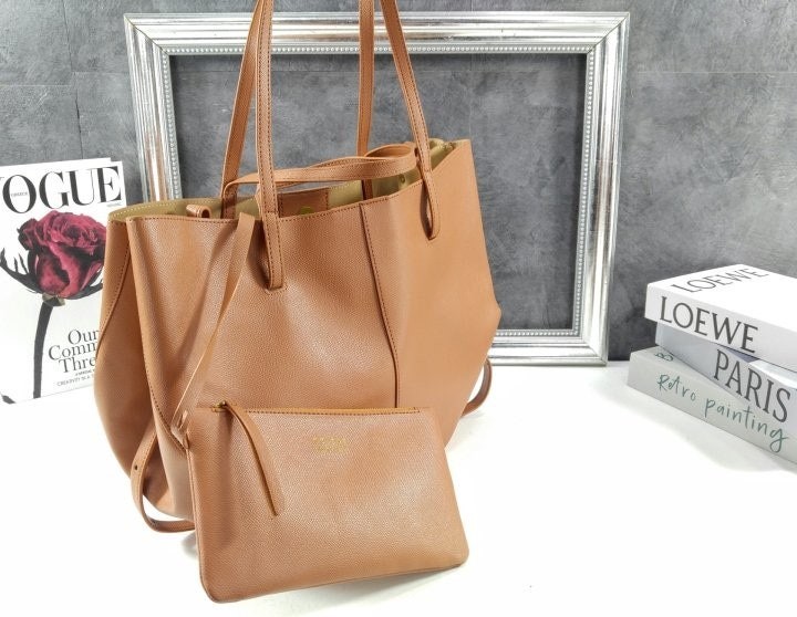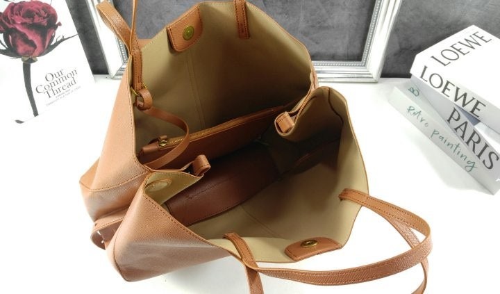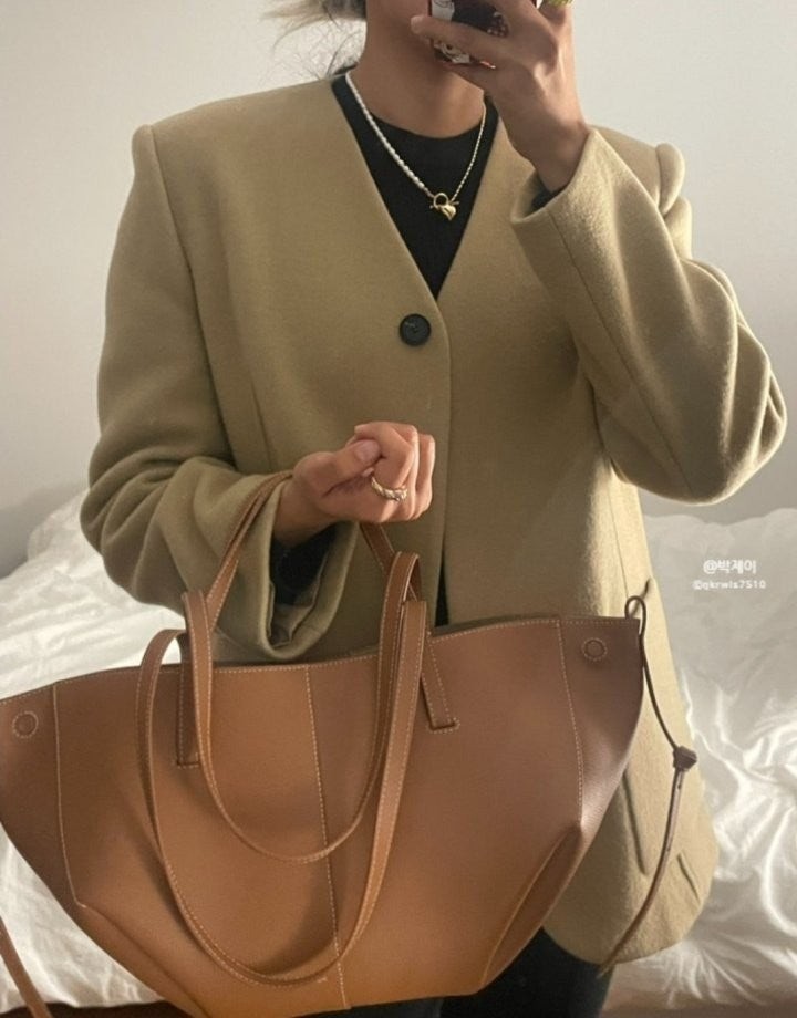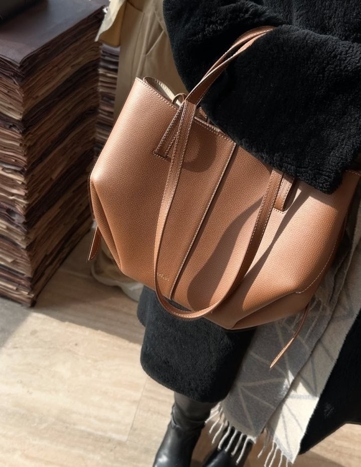물결 모양, 접힘 모양, 곡선 모양이 조각된 토트백으로 두 가지 방식으로활용이 가능