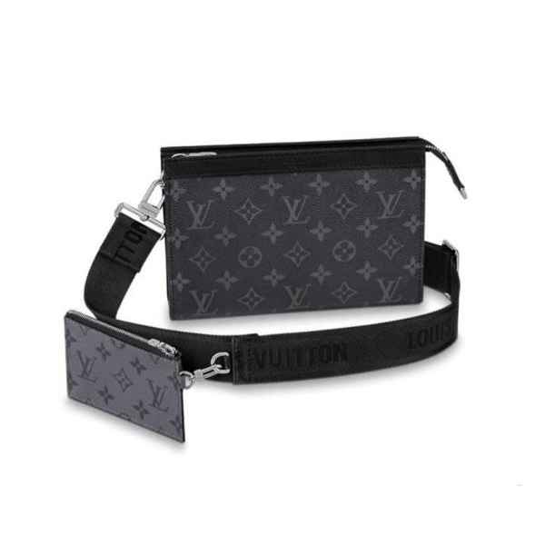 하우스의 포쉐트 보야주에서 영감을 받은 가스통 웨어러블 월릿. 모노그램 이클립스 리버스 캔버스 소재. 탈착 가능한 텍스타일 소재의 조절형 스트랩에 탈착형 카드 홀더를 연결하여 비접촉식 결제 또는 교통카드 결제를 간편하게 할 수 있는 디자인. 스마트폰을 포함한 데일리 필수품을 보관하기에 좋은 사이즈.