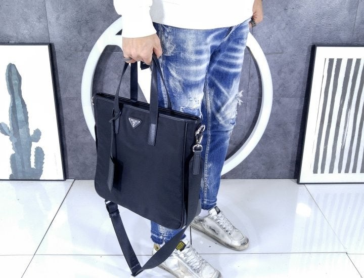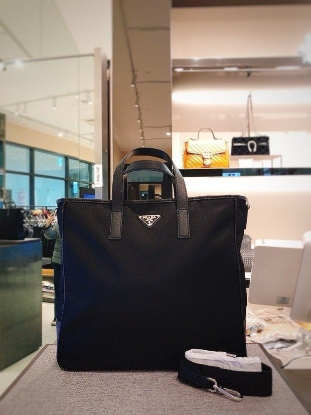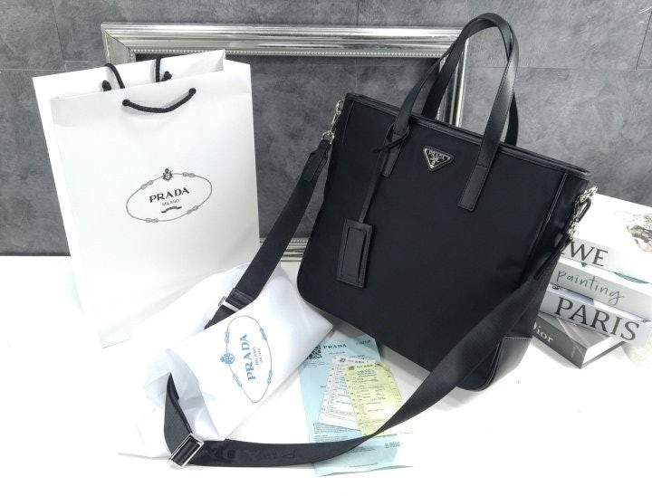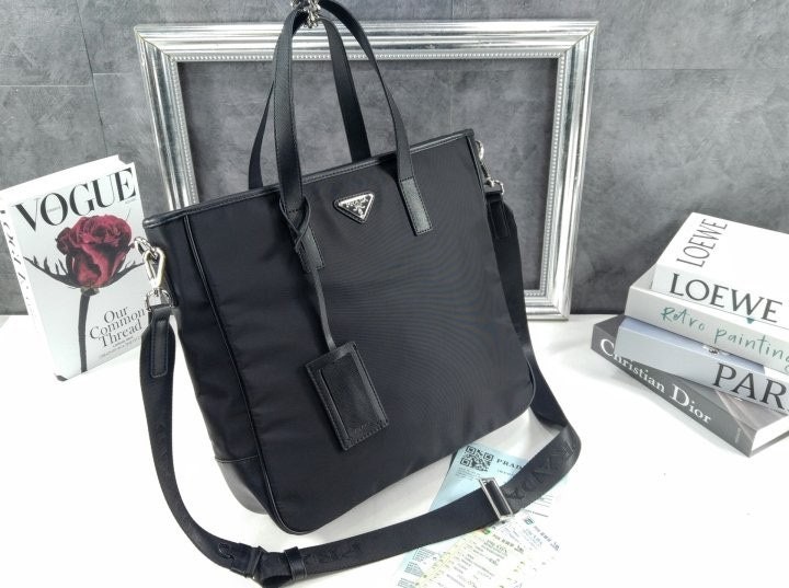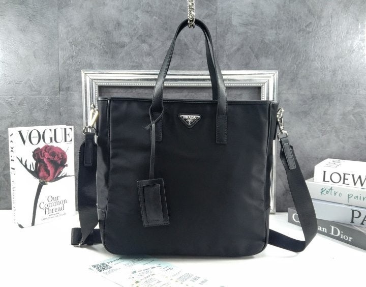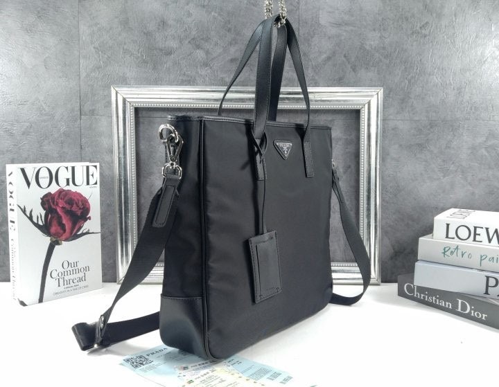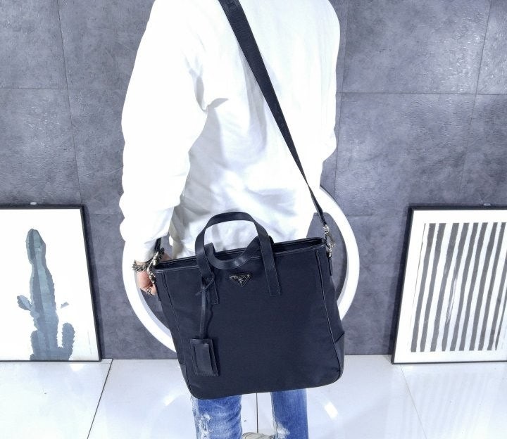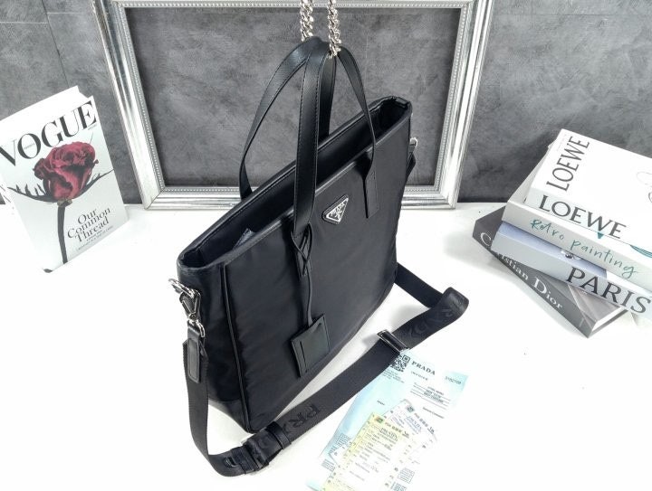 리나일론 소재로 제작한 토트 백으로, 매끄럽고 우아한 디자인.