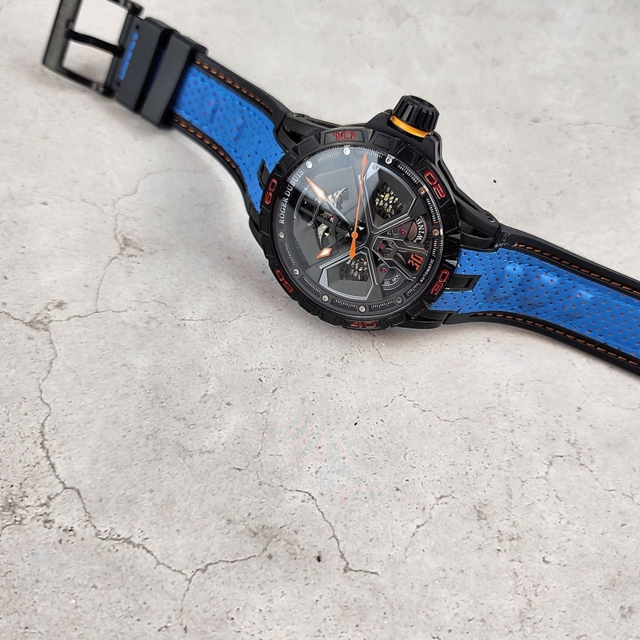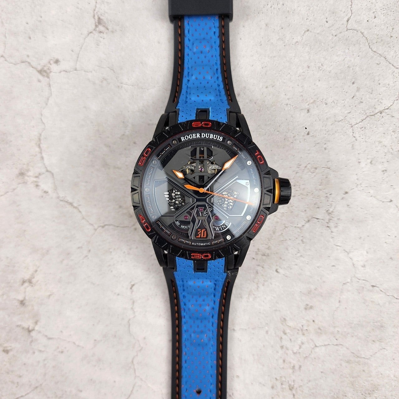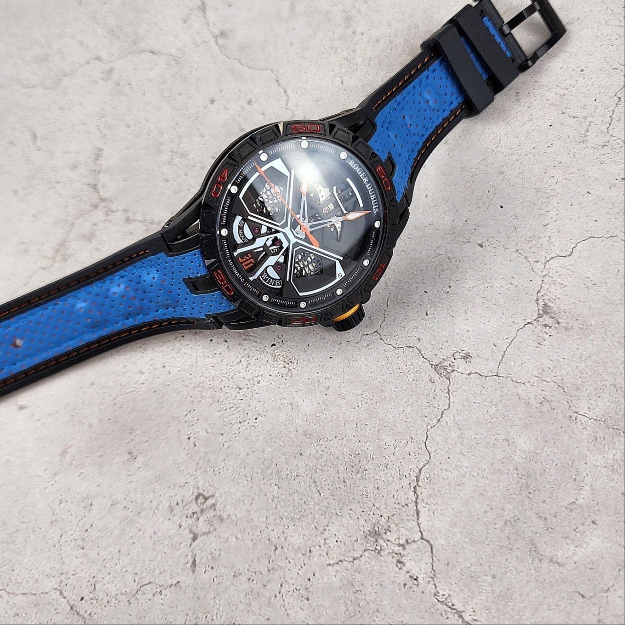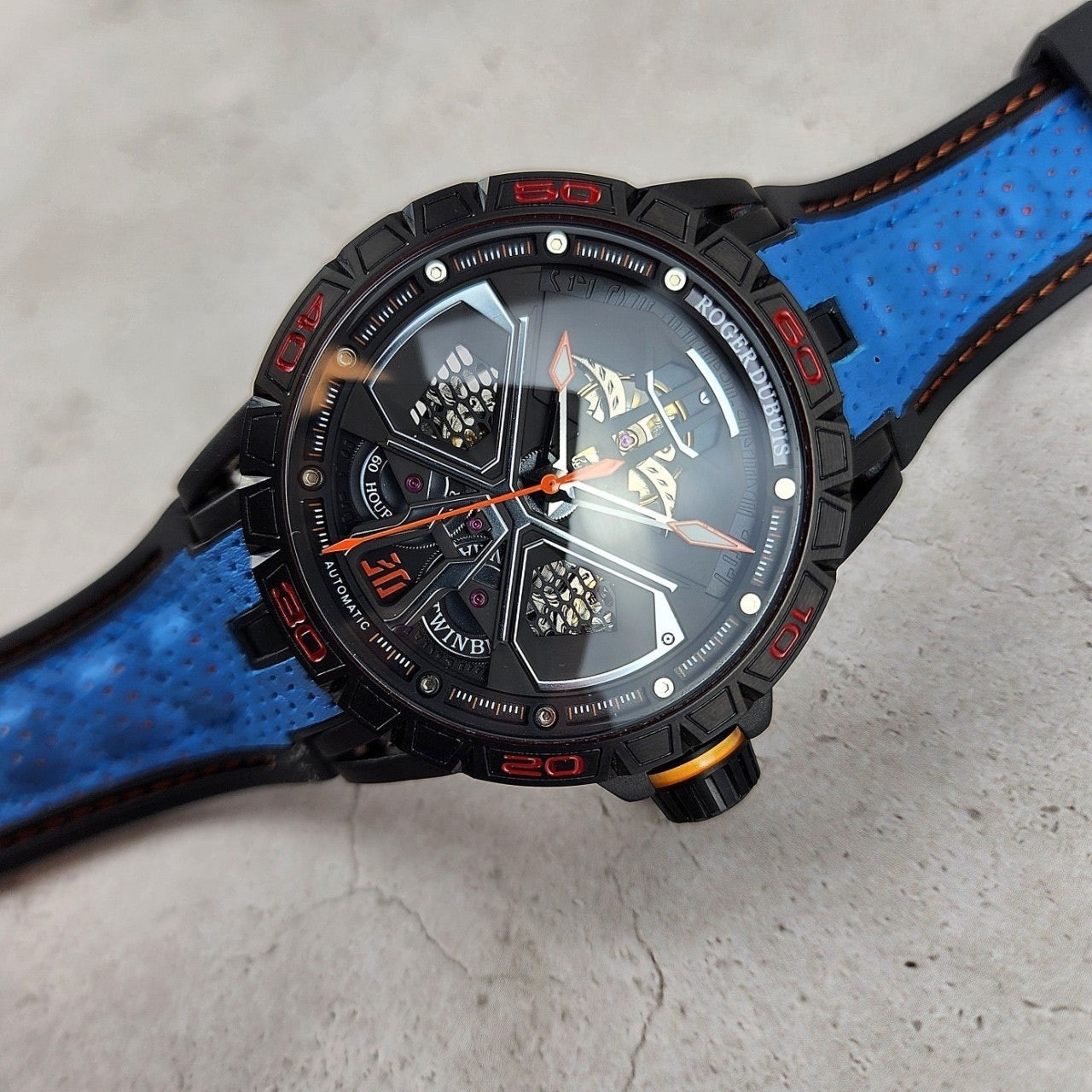 이번에 소개해드릴 시계는 로**뷔 엑스칼리버 우라칸 STO 리미티드에디션 모델입니다. 람보르기니의 일반 도로 주행용 슈퍼카 우라칸 STO에서 영감을 받은 시계입니다.