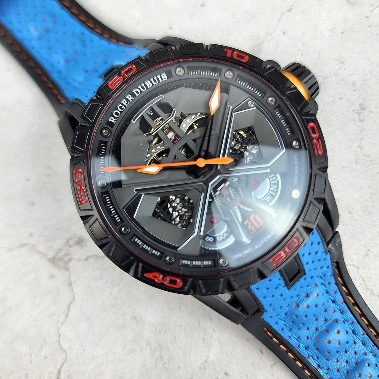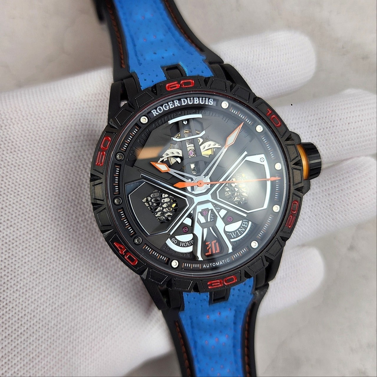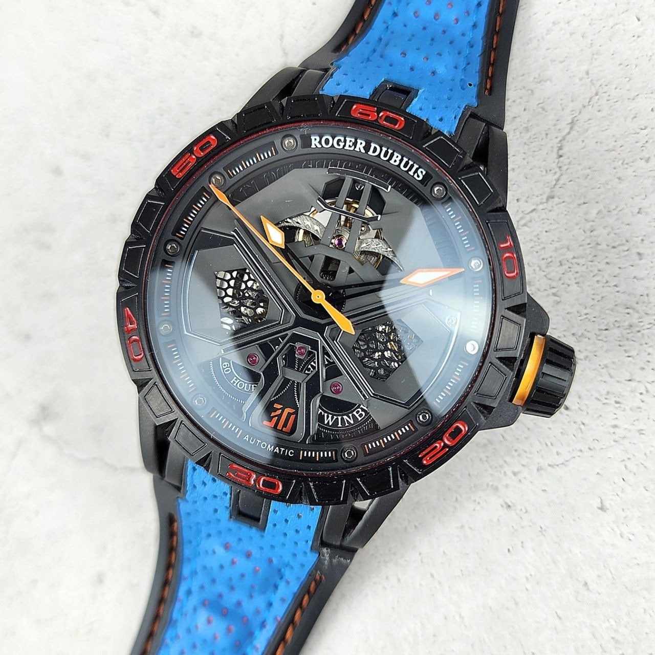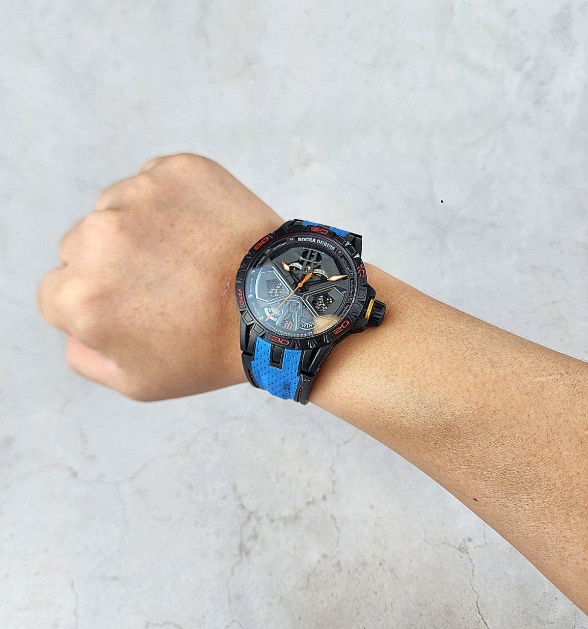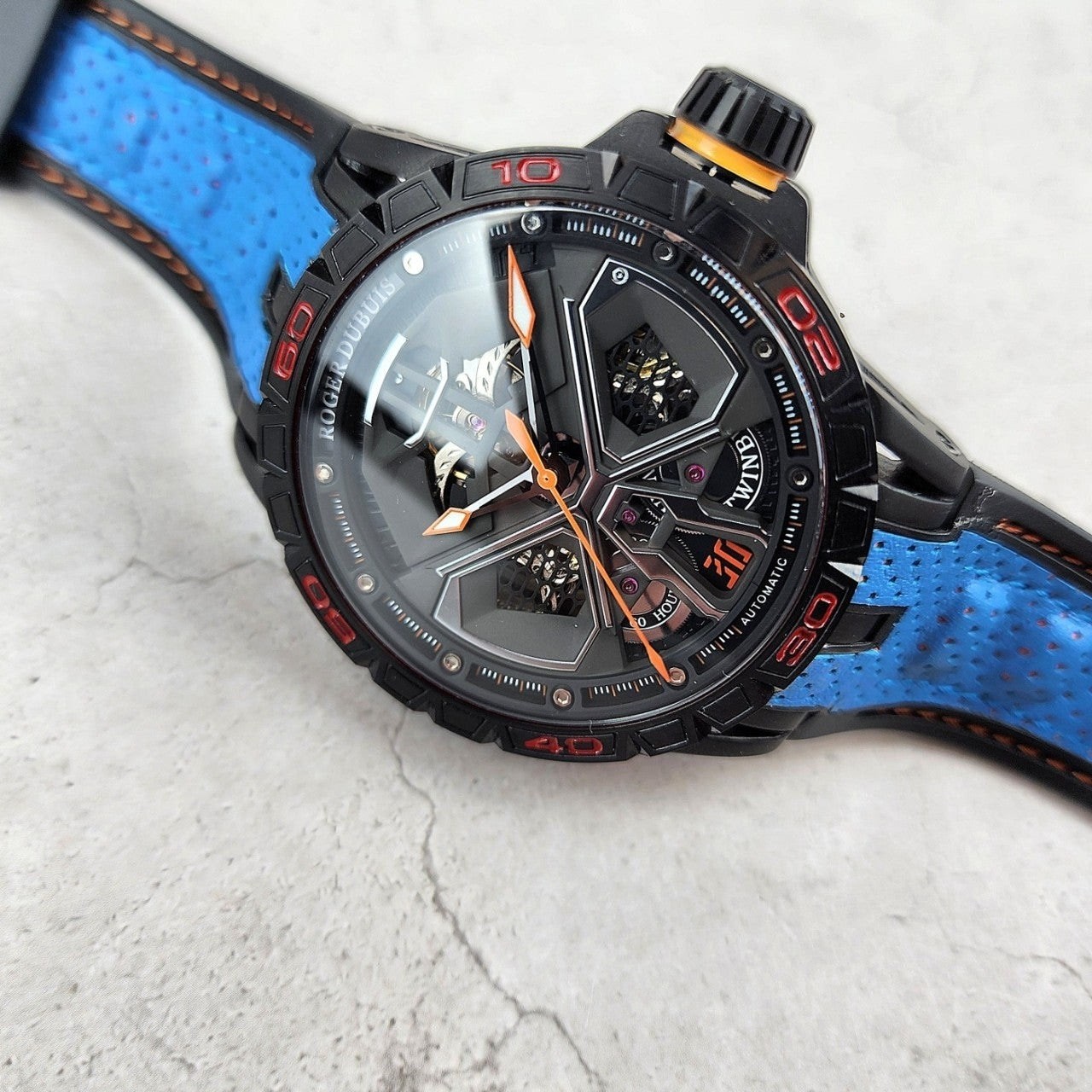 이번에 소개해드릴 시계는 로**뷔 엑스칼리버 우라칸 STO 리미티드에디션 모델입니다. 람보르기니의 일반 도로 주행용 슈퍼카 우라칸 STO에서 영감을 받은 시계입니다.