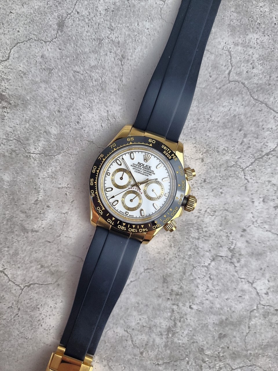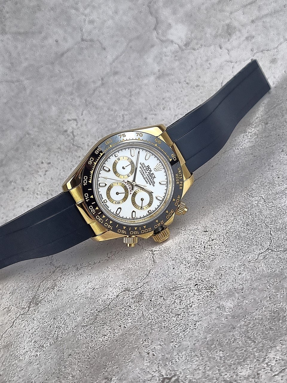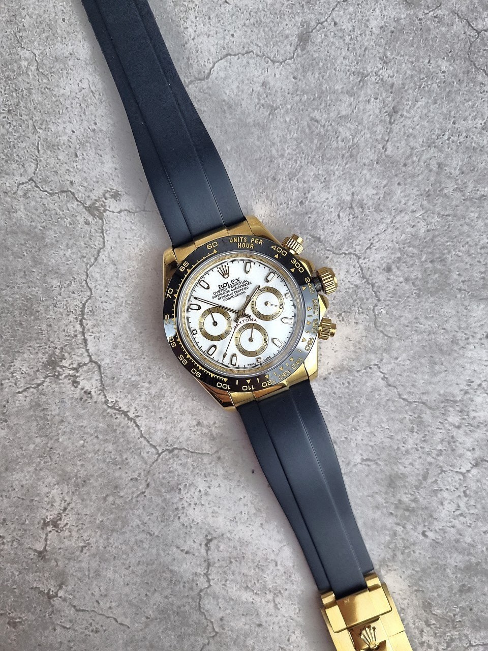이번에 소개해드릴 시계는 로** 데이토나 옐로우골드 화이트다이얼 우레탄스트랩입니다.