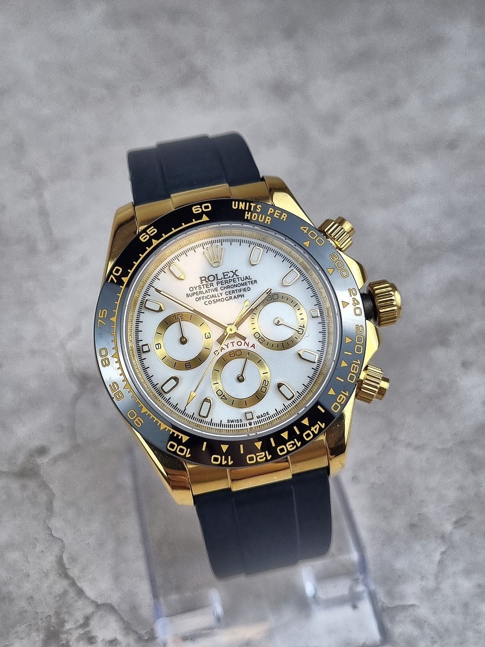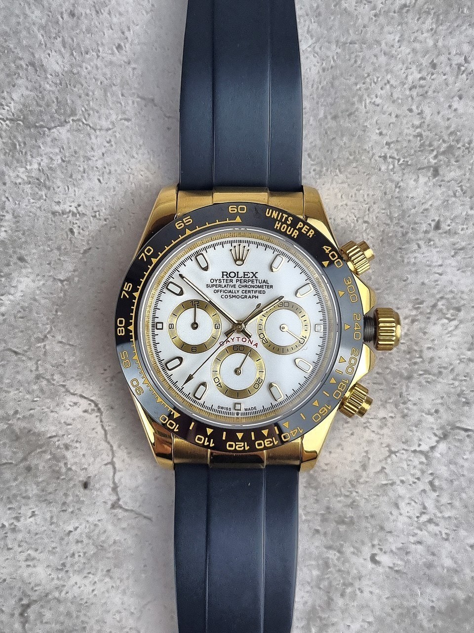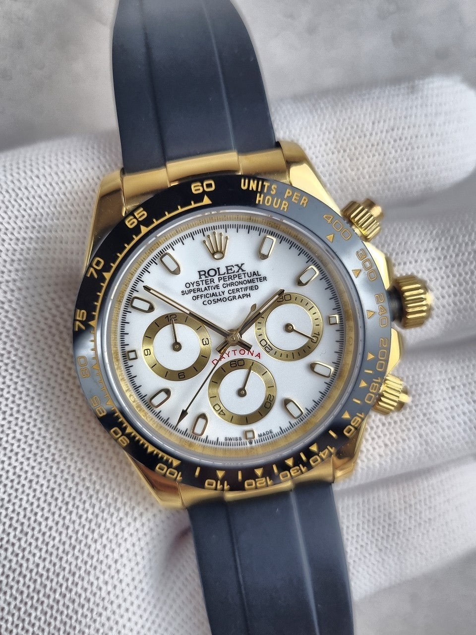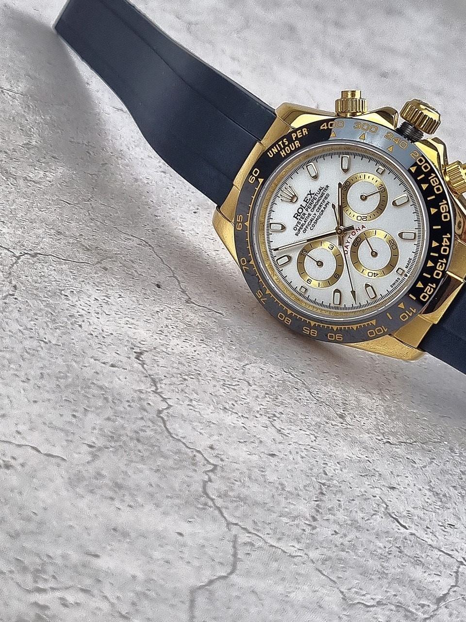 이번에 소개해드릴 시계는 로** 데이토나 옐로우골드 화이트다이얼 우레탄스트랩입니다.