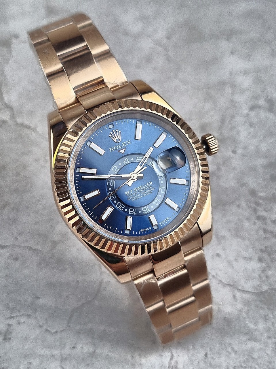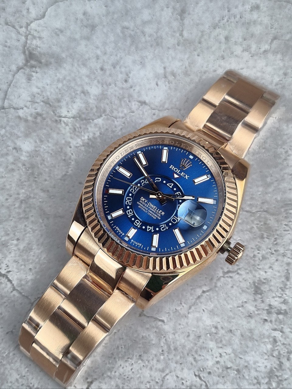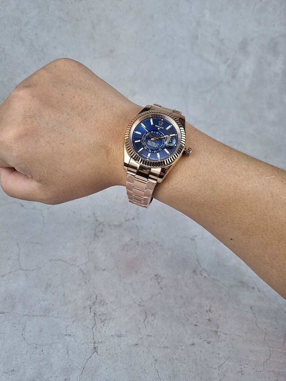 이번에 소개해드릴 시계는 로** 스카이드웰러 로즈골드 블루다이얼 입니다. 찾으시는분들이 너무 많은 모델중 하나입니다. 클래식 라인에 속하는 모델인만큼 어느 복장이든 간편하게 착용하실수 있으시며, 그린다이얼로 력셔리함까지 더해진 시계중 하나입니다. 구하기힘든 모델인만큼 어렵게 입고 시켰습니다.