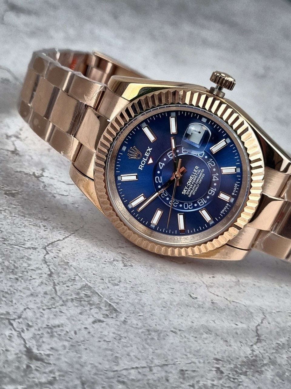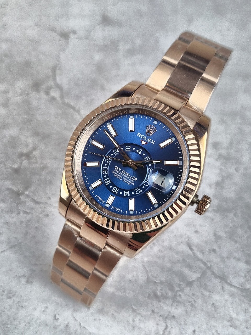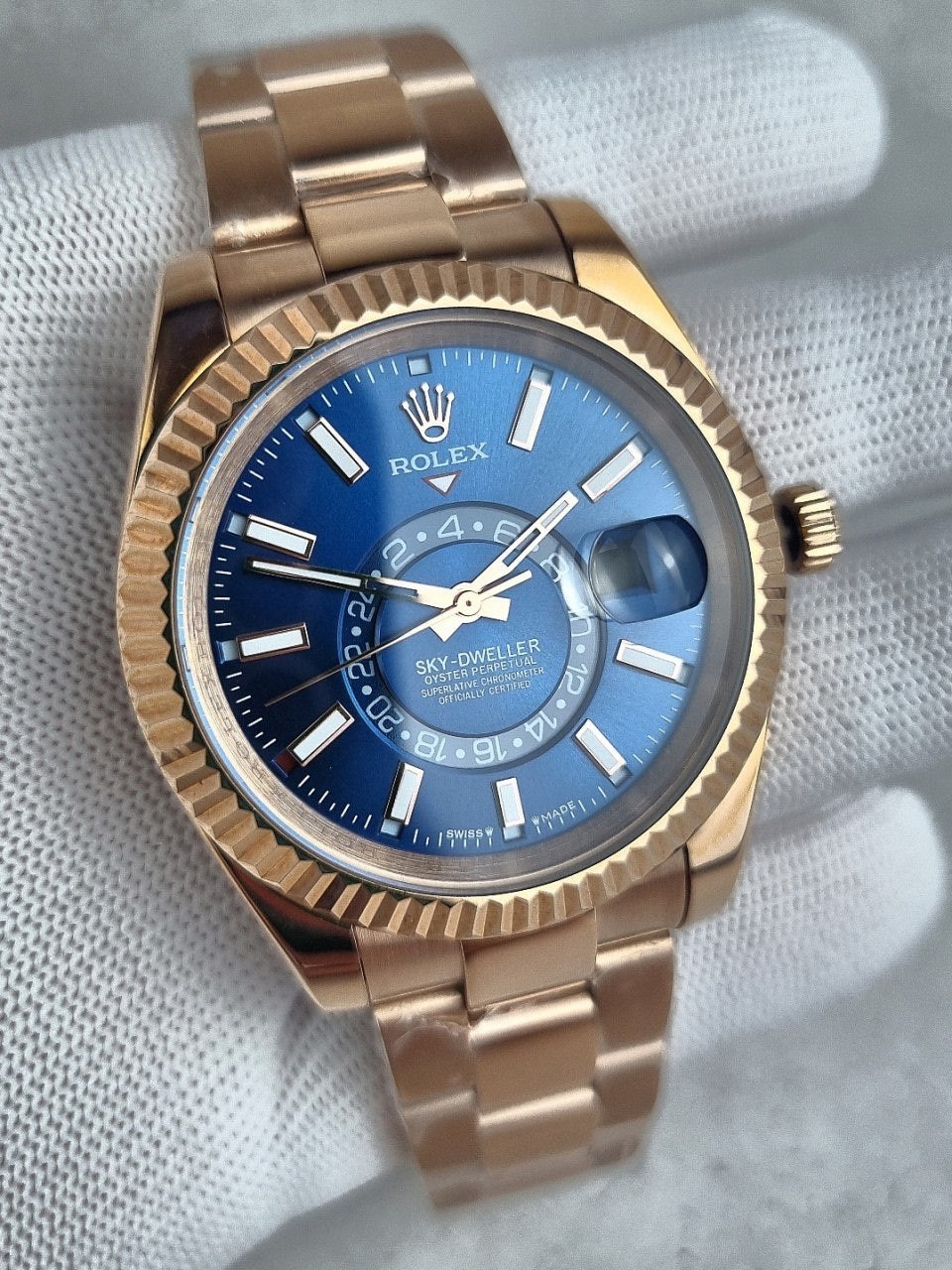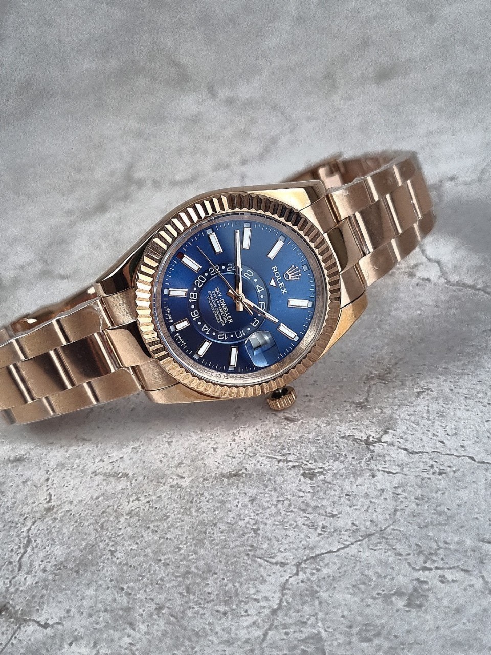 이번에 소개해드릴 시계는 로** 스카이드웰러 로즈골드 블루다이얼 입니다. 찾으시는분들이 너무 많은 모델중 하나입니다. 클래식 라인에 속하는 모델인만큼 어느 복장이든 간편하게 착용하실수 있으시며, 그린다이얼로 력셔리함까지 더해진 시계중 하나입니다. 구하기힘든 모델인만큼 어렵게 입고 시켰습니다.