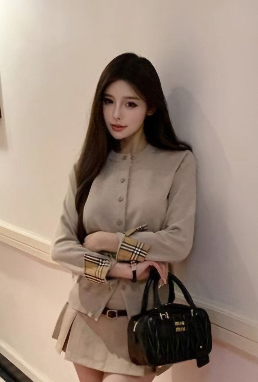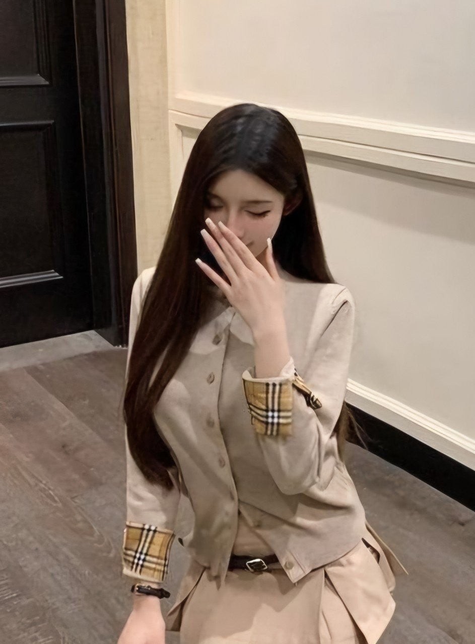 • 버** 체크 포인트 라운드 가디건 수입풀