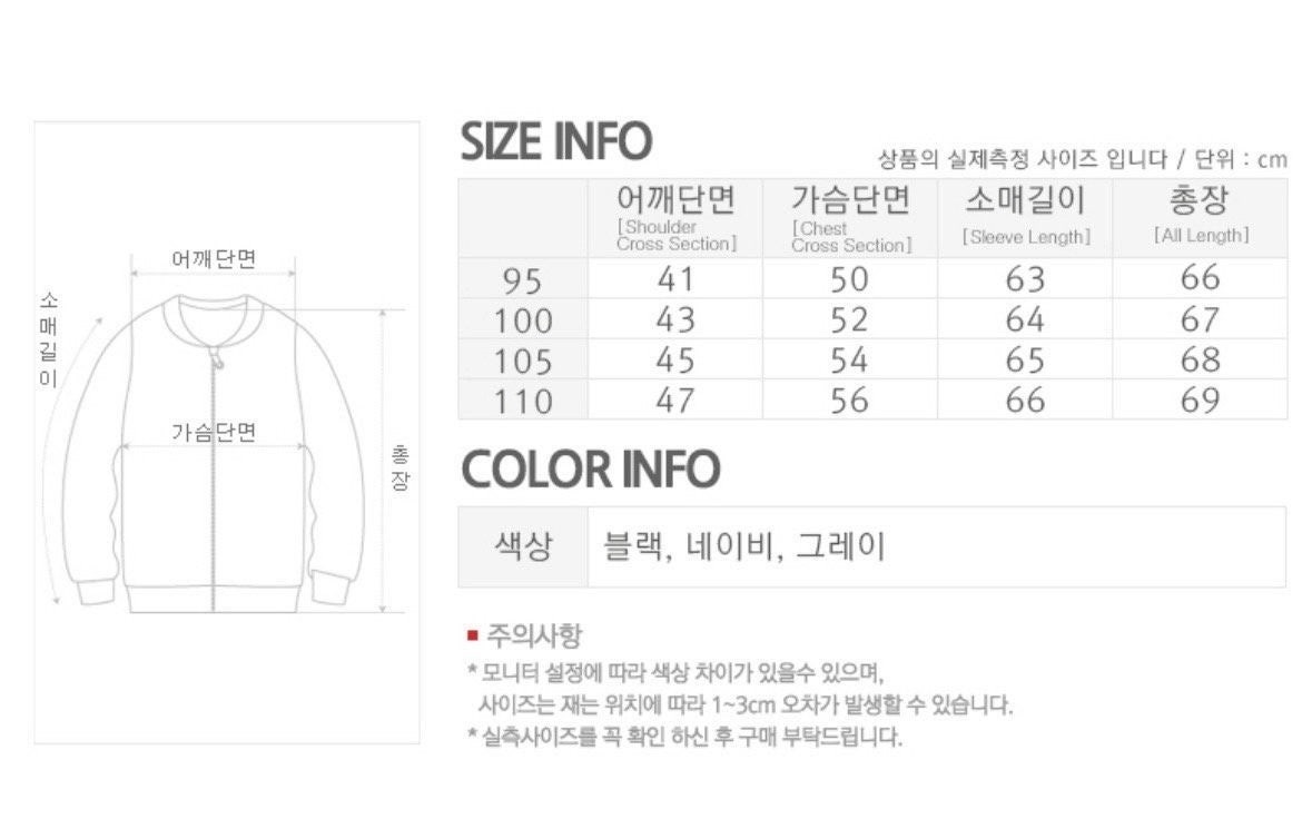 사이즈 - 95(M), 100(L), 105(XL), 110(2XL)