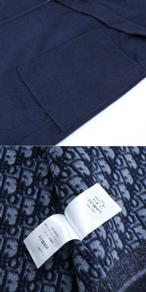 울코트로 양면 블루 울소재에 패브릭 패치 포켓및