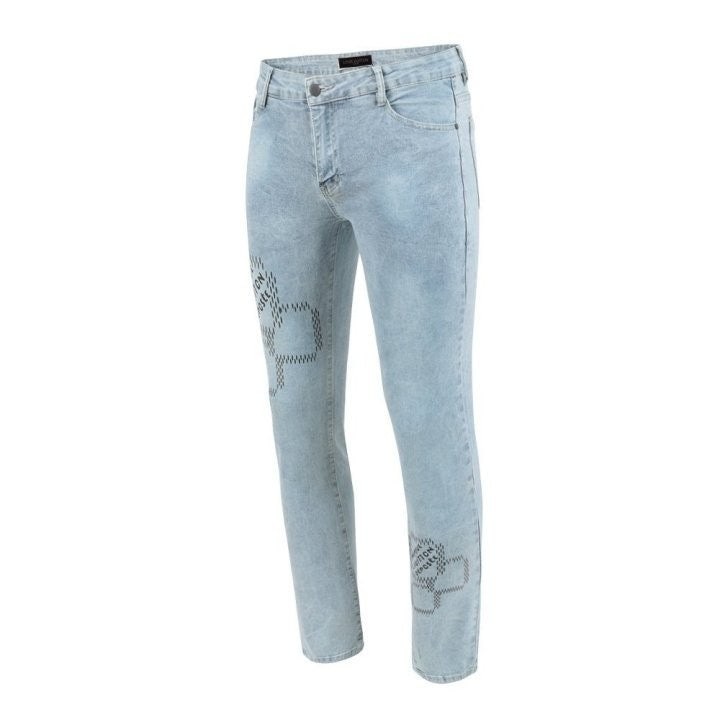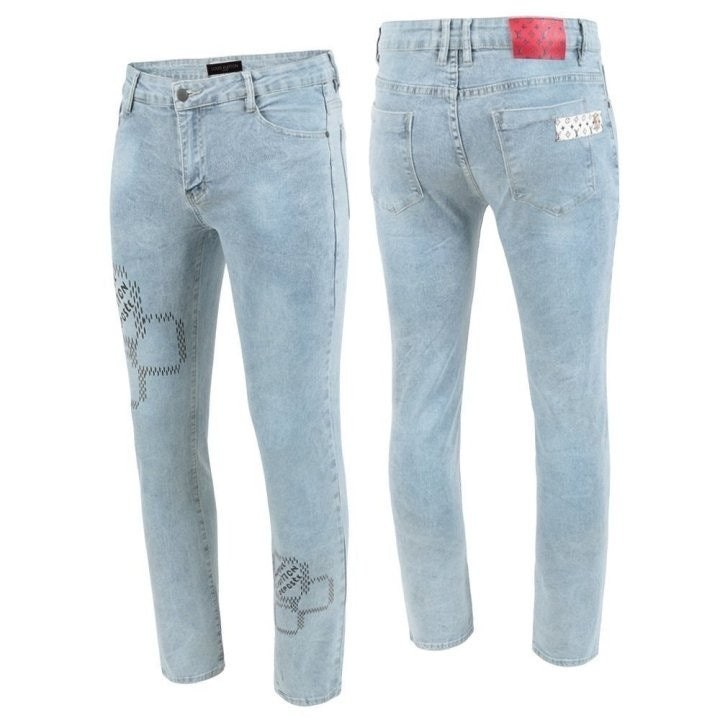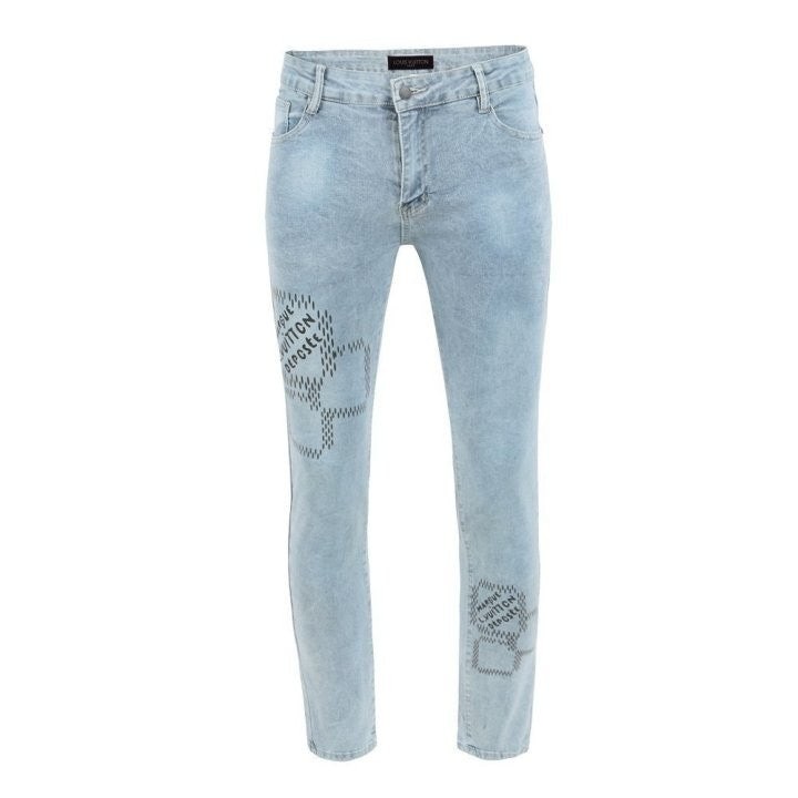 • 루* 모노 스퀘어 프린트 워싱 청바지