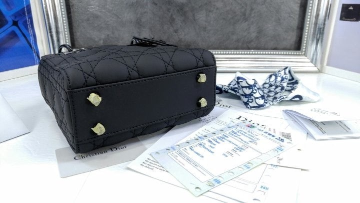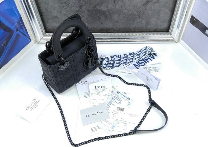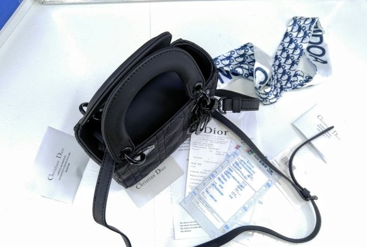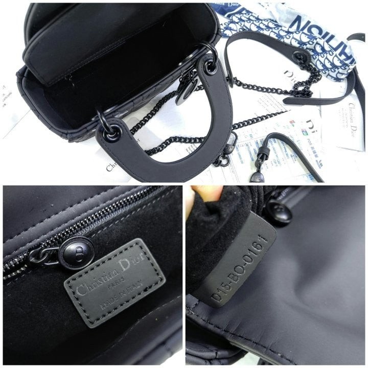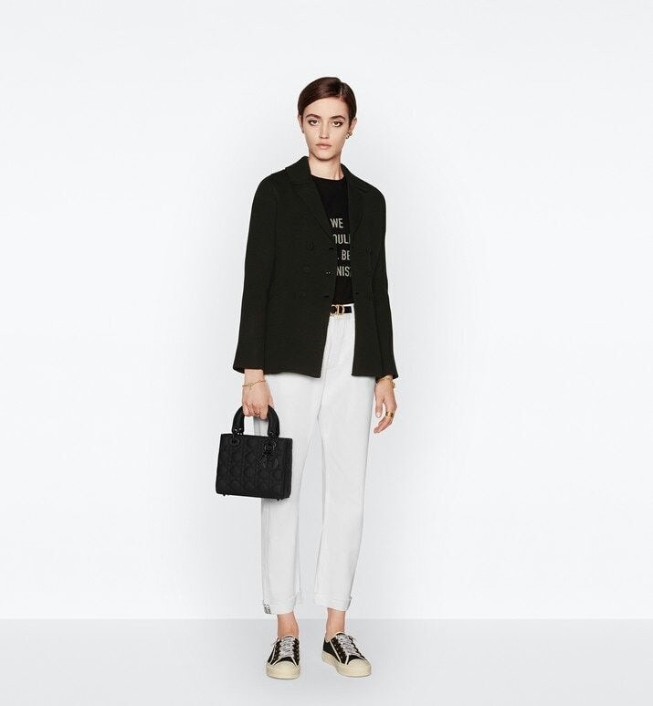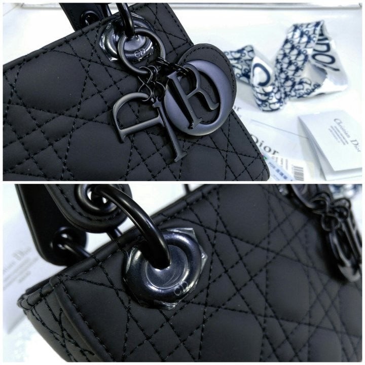 세련되고 고급스러운 분위기의 클래식함과 모던함이 공존하는 백으로, 까나쥬 스티칭이 장식된 블랙 울트라 매트 송아지 가죽의 퀼트 텍스처가 시선을 사로잡습니다. 톤온톤 메탈 소재의 D.★.O.R. 블록 참이 실루엣을 우아한 매력으로 장식합니다. 숄더 스트랩(2개)에 뱃지를 장식해 개성을 표현할 수 있는 독특한 스몰 디자인으로 핸드백, 숄더백, 크로스백 등으로 연출할 수 있습니다.