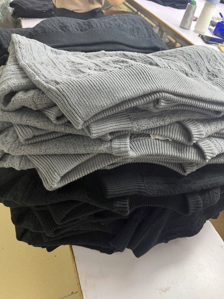 •원사는 면 53%와 나일론 47%를 혼합한 고탄성 코어스펀사로, 피부에 안정적으로 감기면서도 복원력이 좋아 일상 착용에 적합합니다. 편직은 수입 5게이지 Tajima 정밀 장비로 구현한 입체 자카드 기법을 사용해 패턴의 깊이감과 질감을 섬세하게 살렸고, 한 벌을 완성하는 데 약 270분이 소요될 만큼 정교한 공정으로 완성도를 높였습니다. 전용 3종 라벨과 워싱 처리가 적용되어 디테일에서 브랜드급 완성도를 느낄 수 있습니다.