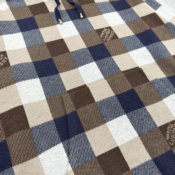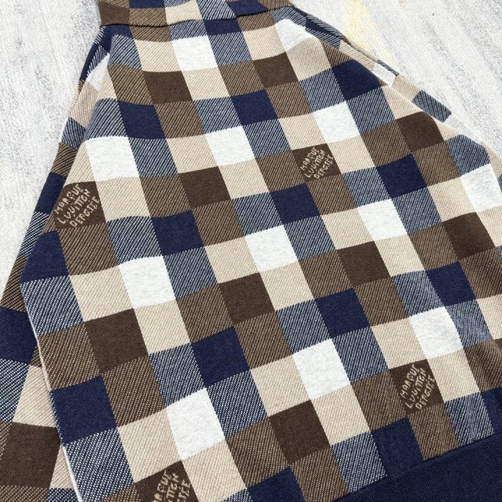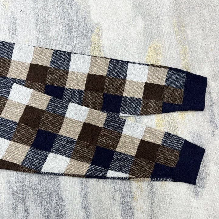 •원단 : 50% 양모와 50% 폴리아미드 섬유로 제작된 48S 의 두 가작의 필링 방지 실을 사용합니다. 색상은 딥 블루와 브라운으로 정밀 염색되었으며, 패턴 부분은 수작업으로 정밀하게 디자인되었습니다. 1x6 바늘의 4색 타피스트 (자카드) 기법을 적용했으며 바늘이 세밀하고 4색 타피스트 (자카드) 방식은 시간이 많이 소요되어 전체 작업은 620분이 걸립니다. 최신 태그를 맞춤 제작하였으며, 전체 제품은 특별한 양모 세탁 공정이 적용되었습니다.