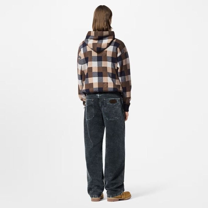 •패션쇼에서 선보인 강렬한 데님자켓 입니다. 워싱 처리한 세련된 자카드로 구현한 변화무쌍한 인디고 색상의 다미에 모티프, 일부 사각형에 은은하게 결합된 ‘Marque L. Vuitton déposée’ 시그니처. 고급스러운 감각을 더하는 진주 버튼, 어떠한 체형도 돋보이게 해줄 디자인으로 셋업으로 함께 팬츠나 단품으로도 코디를 연출할 수 있는 아이템 입니다.