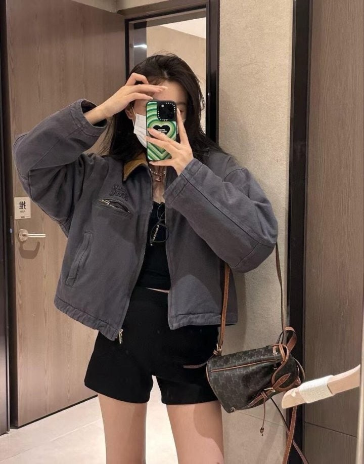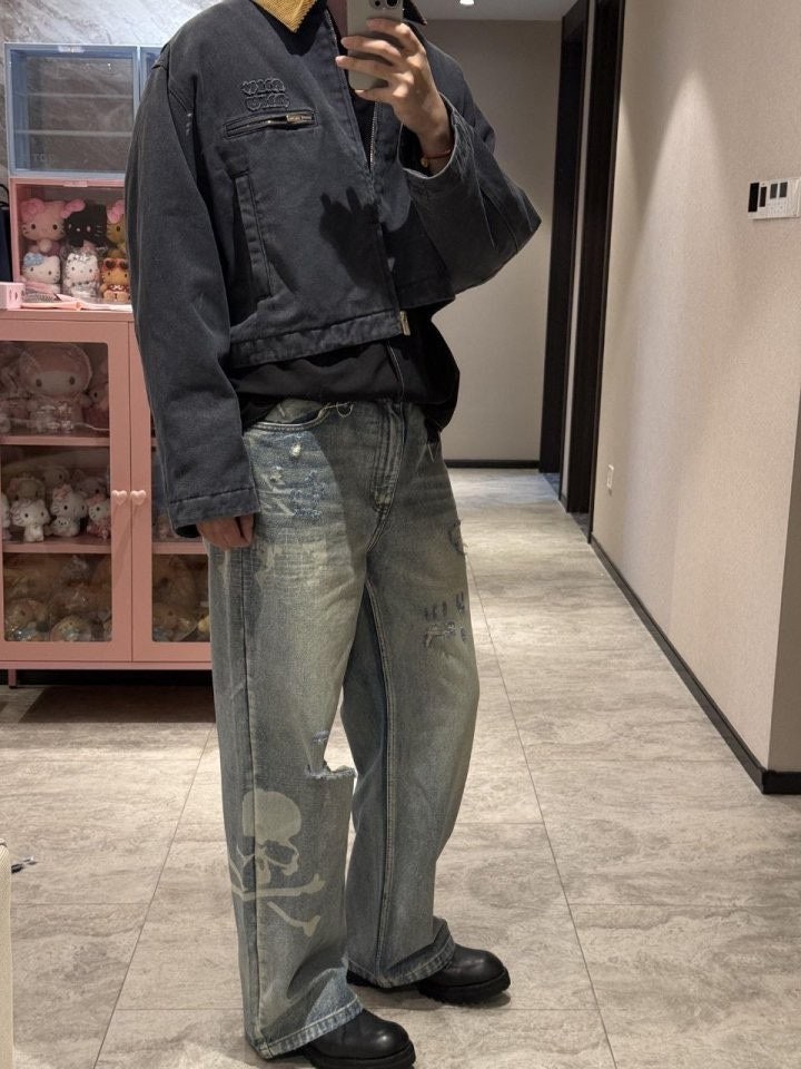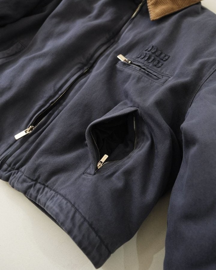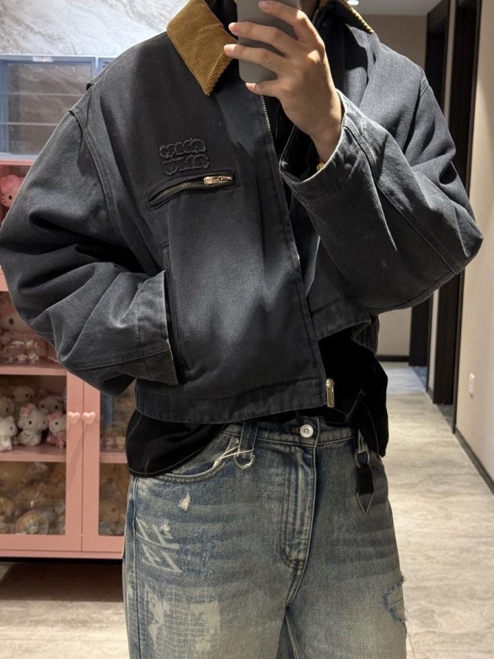 •전체적으로 의류는 ZP과 동일한 왼쪽으로 비스듬한 7격 사로방 350g 데님 원단으로 제작되었으며, 색이 있는 원단이 아니라 완성된 의류를 전체적으로 염샘 및 워싱하여 ZP의 빈티지한 맛의 효과를 재현했습니다. MU의 루즈핏 스타일은 항상 그들의 대표적인 특징입니다. 안감 중간 층은 기계로 압착된 발열 솜 층을 사용하여, 겨울철에 단독으로 착용해도 보온성이 뛰어납니다. 착용했을 때의 핏은 너무 이쁘며 남녀 공용 디자인 입니다.