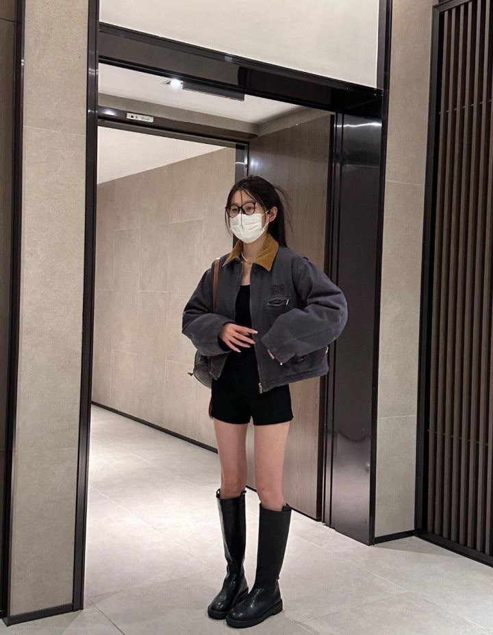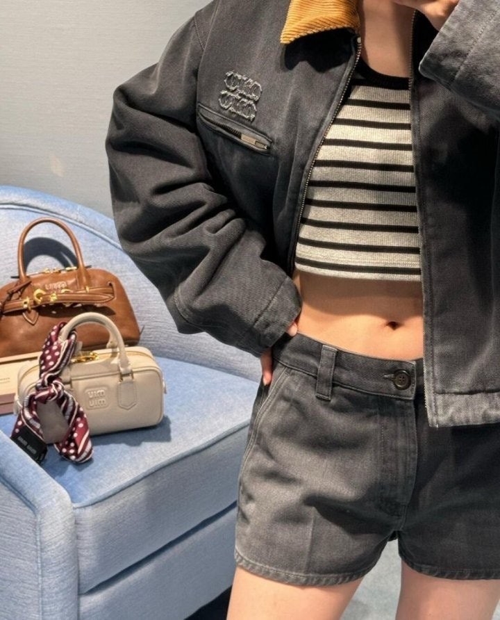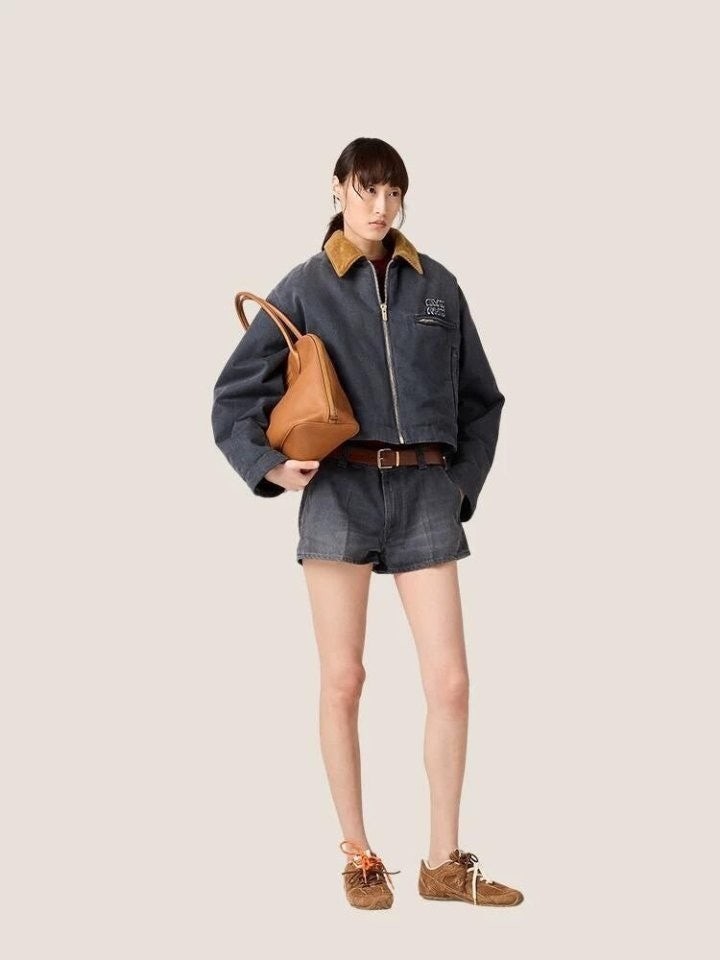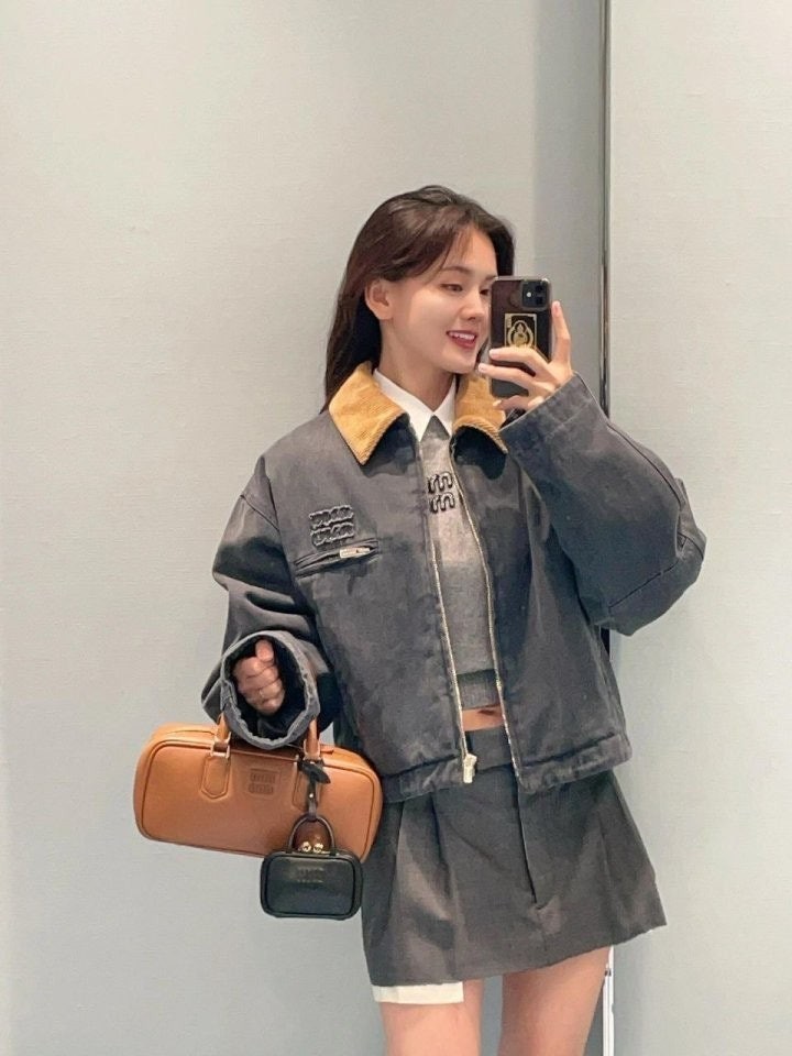 •MI*MI* (미*미*) 25 가을 겨울 코듀로이 카라 전면 데님 패딩 재킷, 패셔니스타 필수 아이템! 크롭 스타일이지만, OS 루즈핏 디자인입니다.
