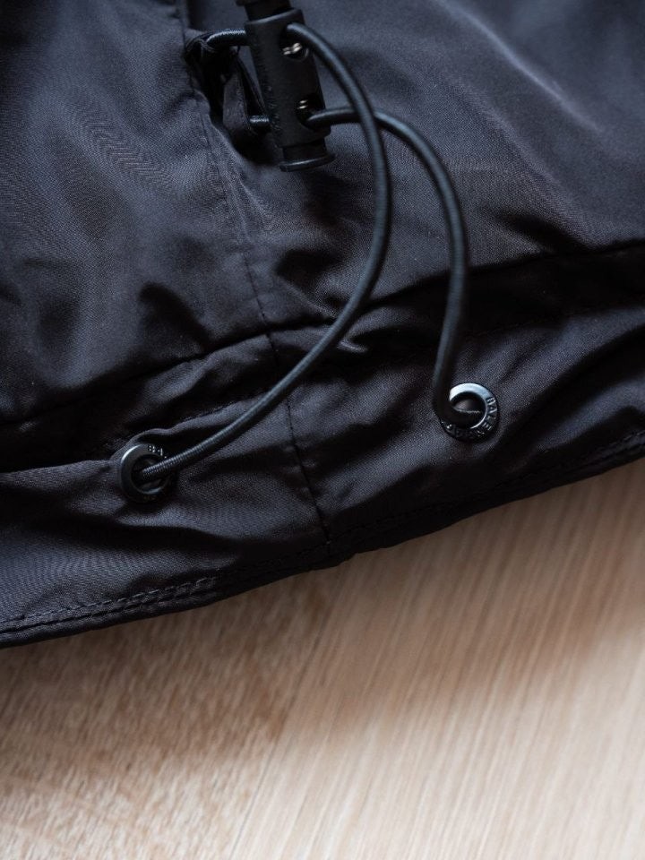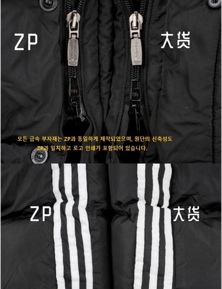 •소매 부분은 클래식한 삼선 컬러 스트라이프 디자인으로, 초미세 스티치로 고밀도 봉제 공법을 사용하였으며, 양쪽 하단과 소매 끝에는 조절가능한 스트링이 있습니다. 삼선 로고는 고출력 일본 수입 프린팅 기법으로 제작되었으며, 숨겨진 지퍼 단추 앞여밈으로 클래식한 스탠드 칼라 디자인입니다. 앞이 길고 뒤가 짧은 푸퍼 디자인으로 전체 원단은 매트한 나일론 원단을 사용하여 ZP 퀄리티와 일치합니다.