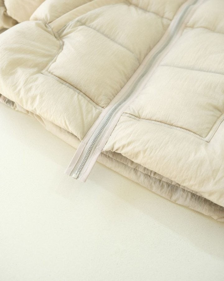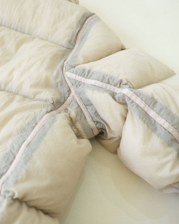 •내부 충전재는 국가 표준 90% 화이트 구스 솜털로, 700필 파워의 부풀림을 자랑합니다. 충전량은 소형 250g, 대형 270g이며, 다운 공장에서 제작하였습니다. (가공 공장에서 솜털을 바꾸는 현상을 완전히 방지했습니다.)