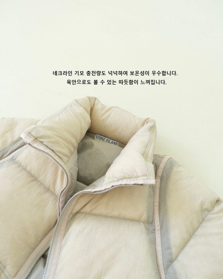 •강력 추천하는 제품! 개인 소장! St*ne Isla** (스*) 06 vintage down jacket 패딩, 망사 와팬 스탠드 칼라 다운 재킷 입니다.