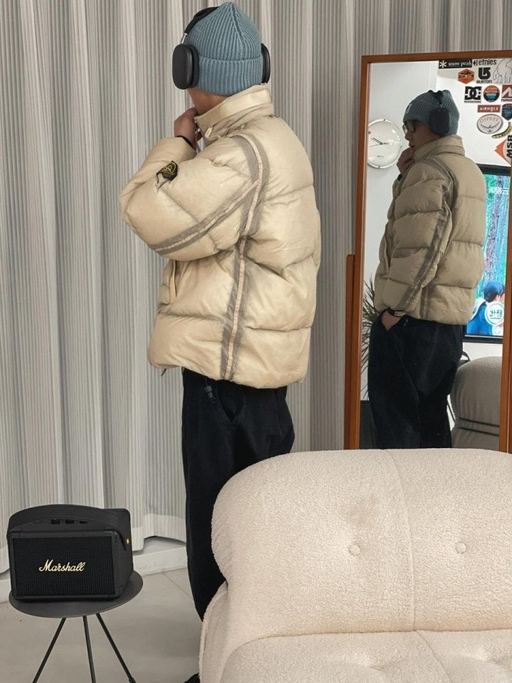 •강력 추천하는 제품! 개인 소장! St*ne Isla** (스*) 06 vintage down jacket 패딩, 망사 와팬 스탠드 칼라 다운 재킷 입니다.