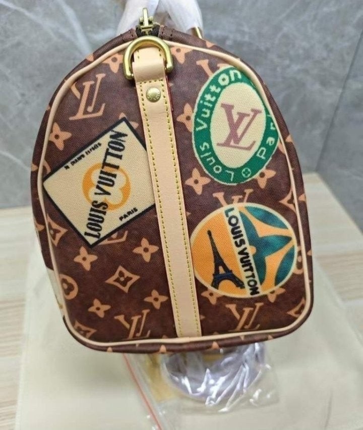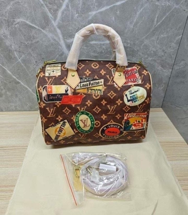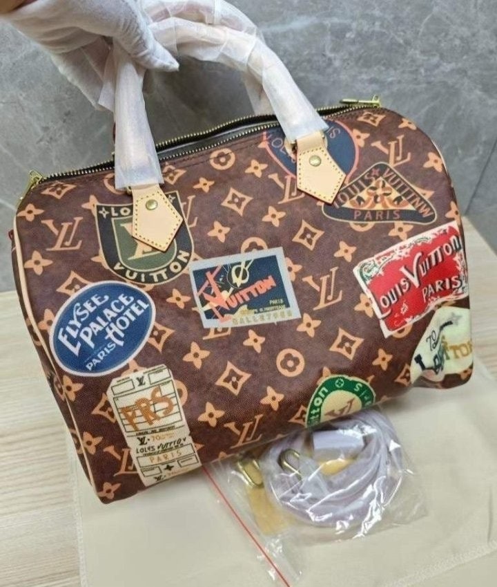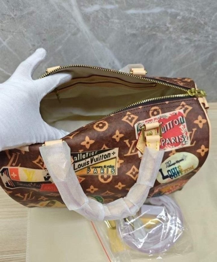 하우스 아카이브에 소장된 모노그램 캔버스 소재에서 영감을 받아 면 및 리넨 소재와 얇은 레진 코팅을 결합하여 선보이는 스피디 반둘리에 30 핸드백. 호텔 라벨로 이루어진 패치워크를 장식하여 가스통 루*의 전설적인 컬렉션에 오마주를 바치며 시대를 초월하는 매력을 선사하는 아이템. 우아한 헤리티지 감성을 더하는 메종 고유의 천연 카우하이드 가죽 소재 트리밍.