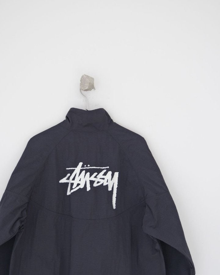 •STUS** X NI** 콜라보 아노락 트레이닝 재킷은 가볍고 방풍·방수 기능을 가진 나일론 원단에 DWR(발수) 코팅을 더해 실용성을 높인 아이템입니다. 전체적인 실루엣은 넉넉한 빈티지 스포츠 스타일로, 현재 스트릿 패션 트렌드와 잘 어울리며 다양한 코디에 무난하게 매치됩니다. 가슴과 소매 등에 들어간 시그니처 그래피티 로고가 포인트로 시선을 끌고, 블랙&그레이 빛이 띄는 색상으로 구성되어 활용도가 높습니다. 원단의 특성상 비와 바람을 어느 정도 막아주고 관리도 수월해 아웃도어 활동이나 일상 외출용으로 모두 적합합니다.