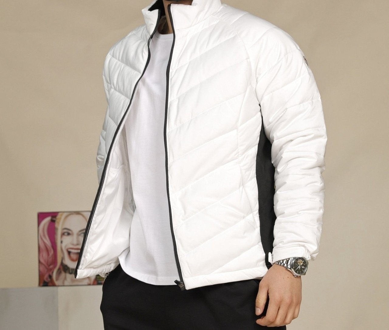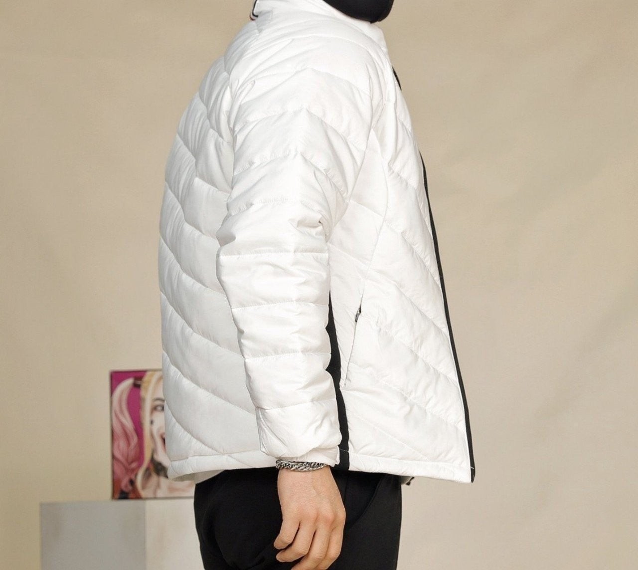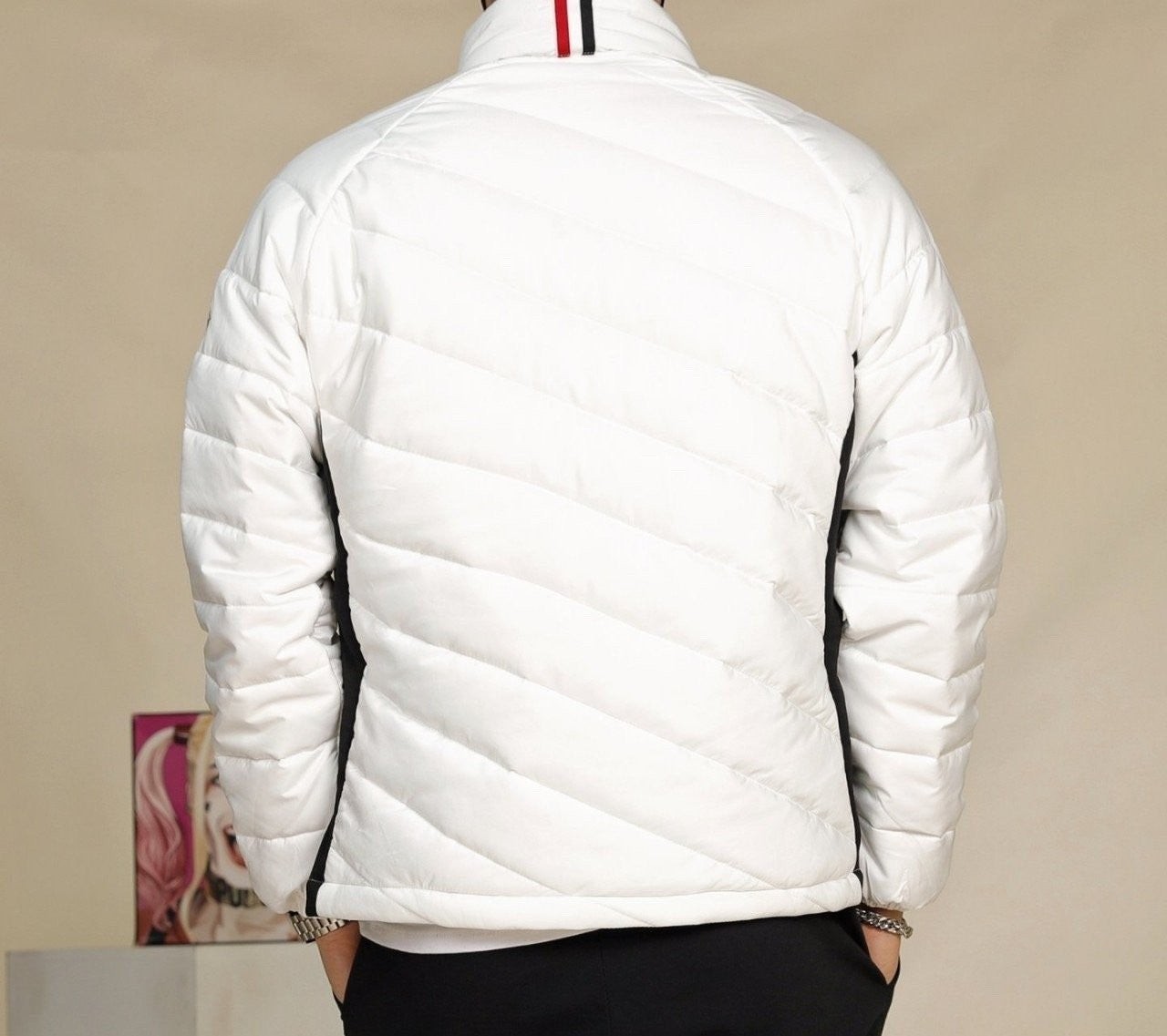 웰론팩 충전제 사용으로 가볍고 복원력이 좋으며 안감 전체를 방풍원단 으로 마감하여 보온성이 탁월한 제품으로 멋스런 분위기와 패딩의 스포티함이 잘 어우러진 제품입니다.
