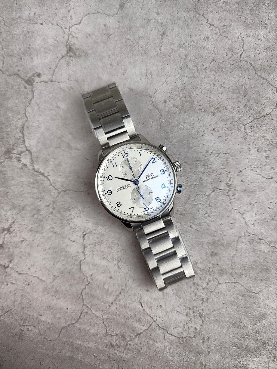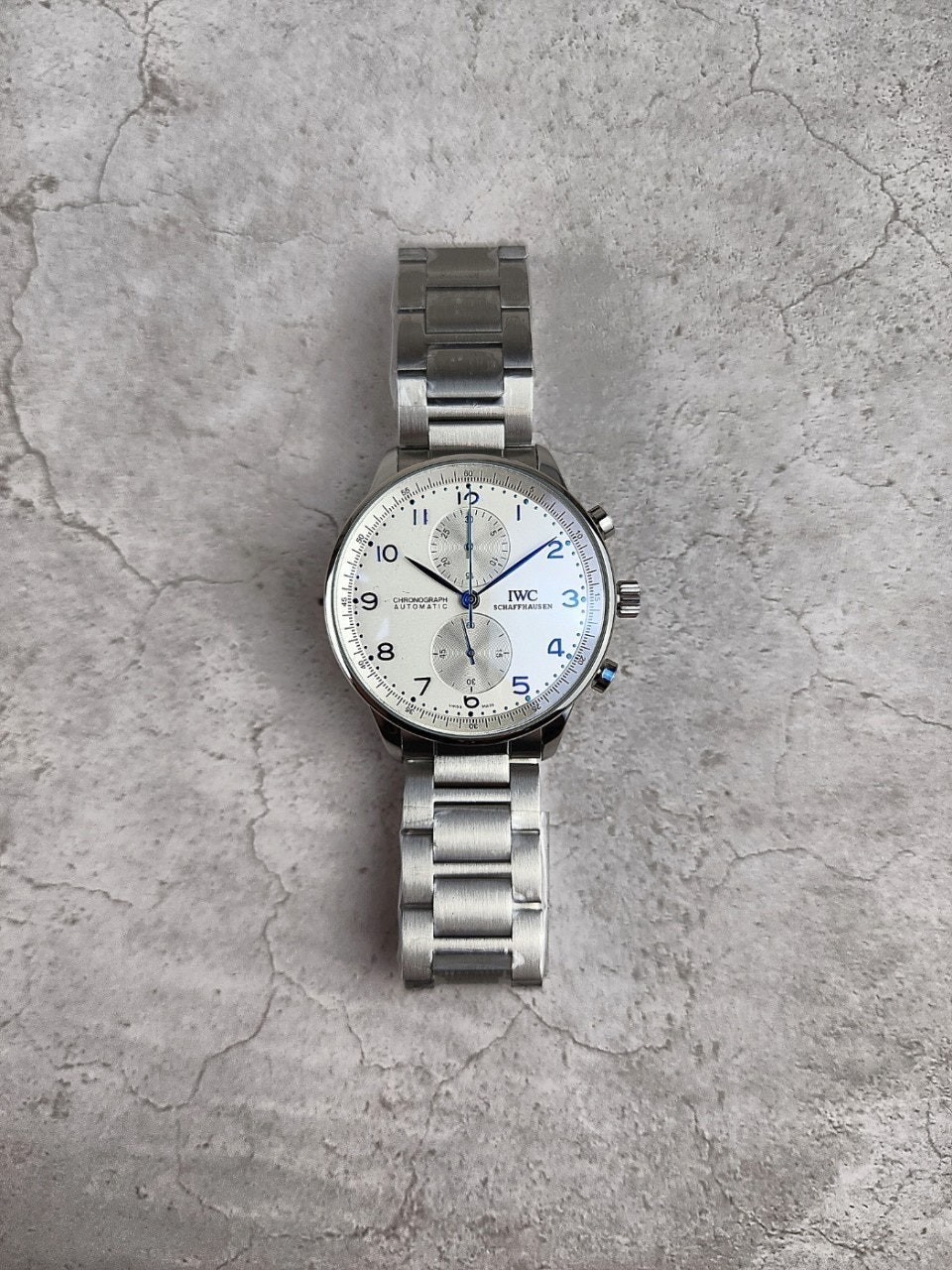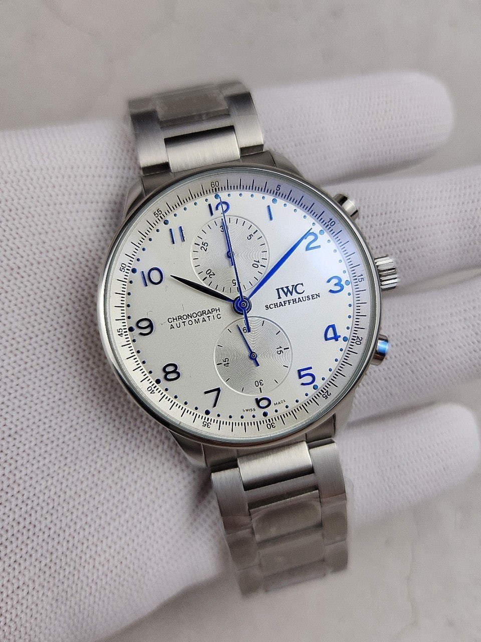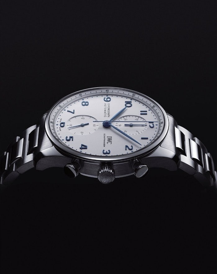 I** 모델중 가장 유명한 샤프하우젠 포르투기저 모델은 많이 찾는 시계중 하나이면서 화이트다이얼과 블루침의 조합으로 영롱함과 우아한 자태를 뽐내는 시계입니다.