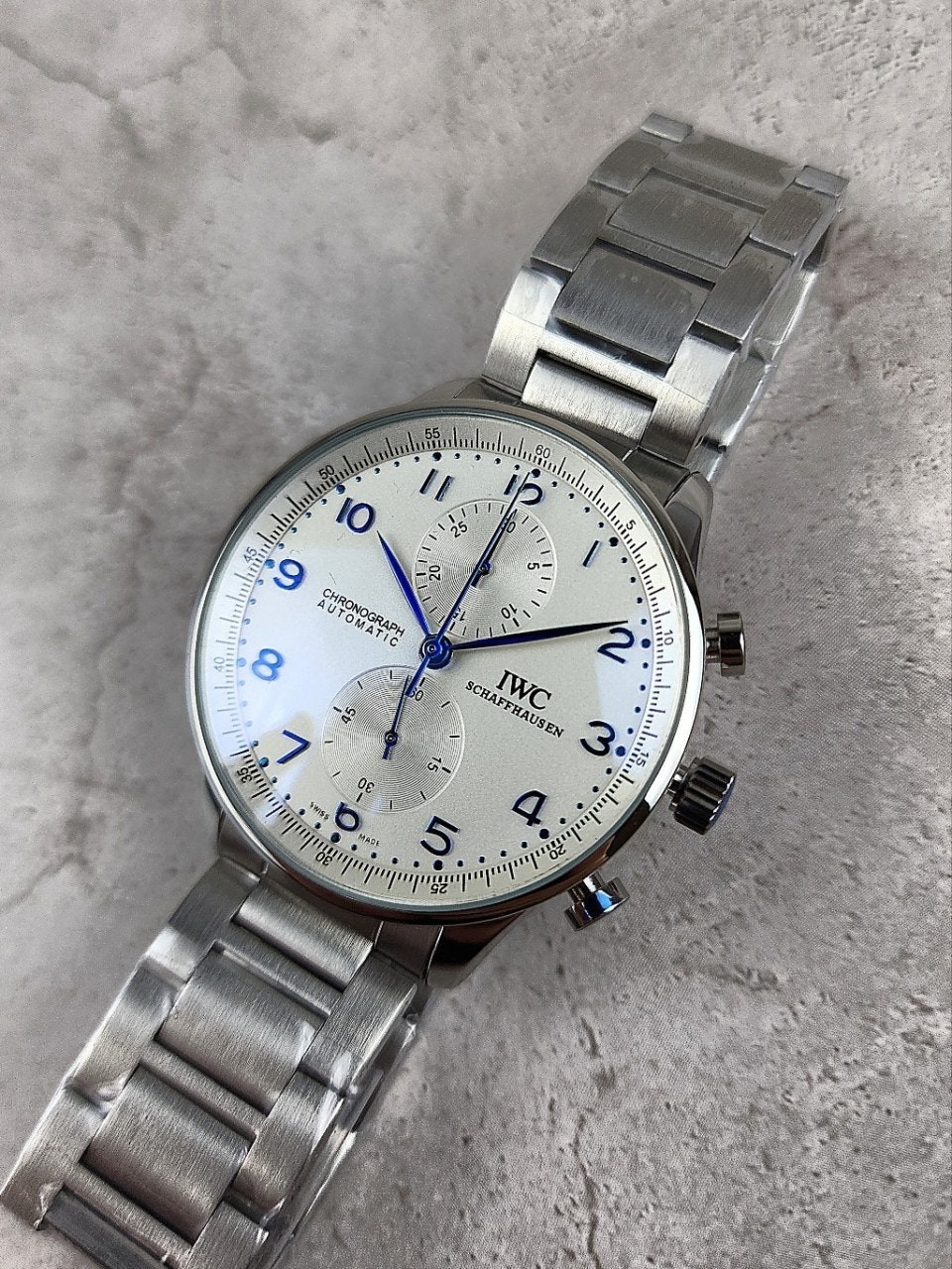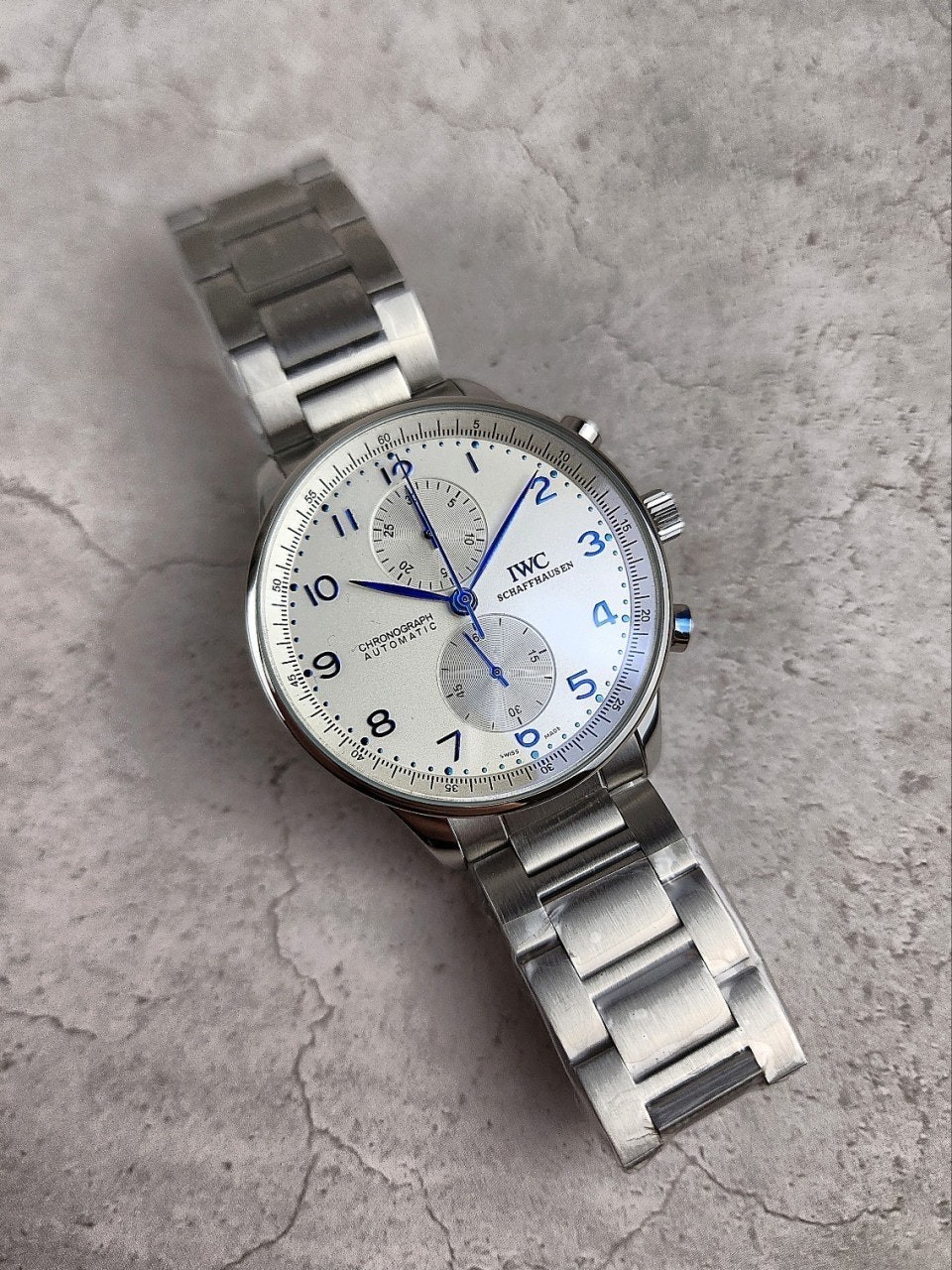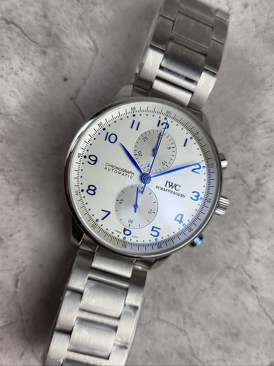 I** 모델중 가장 유명한 샤프하우젠 포르투기저 모델은 많이 찾는 시계중 하나이면서 화이트다이얼과 블루침의 조합으로 영롱함과 우아한 자태를 뽐내는 시계입니다.