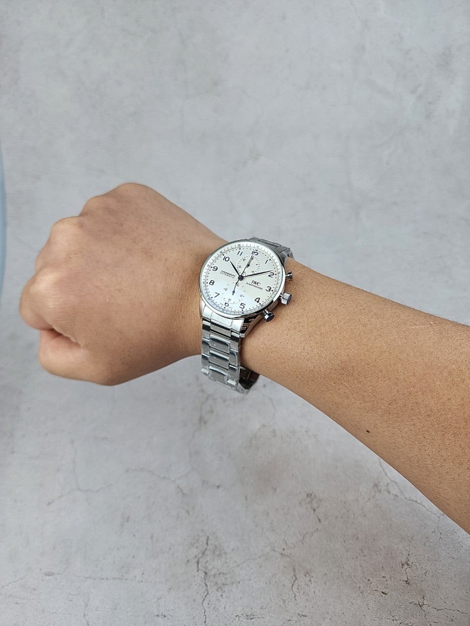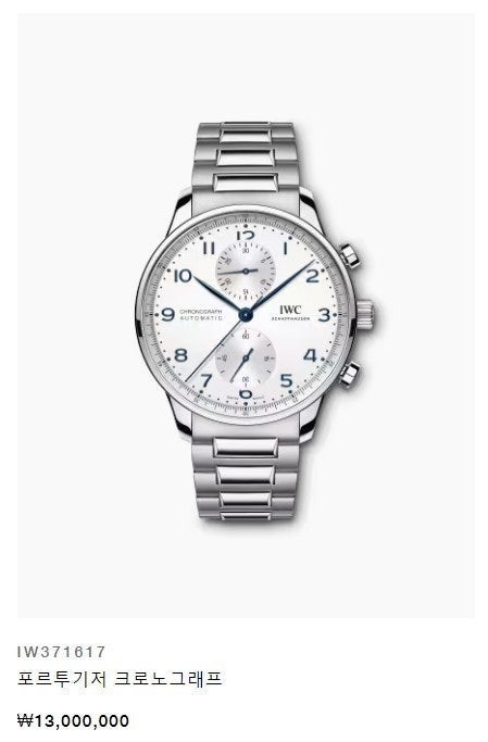 이번에 소개해드릴 시계는 I** 샤프하우젠 포르투기저 화이트다이얼 스틸줄 니다.