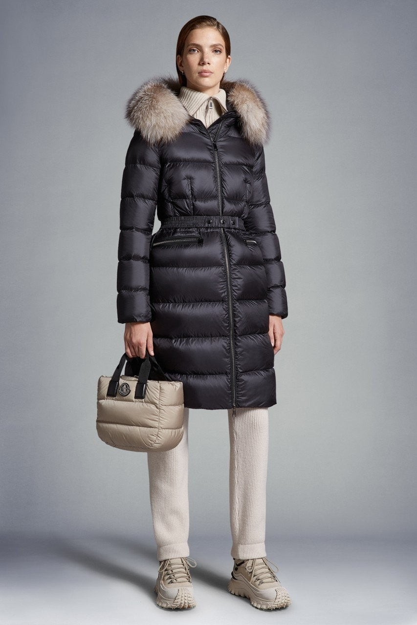Boedic 롱 다운 재킷은 벨트 웨이스트라인으로 드러나는