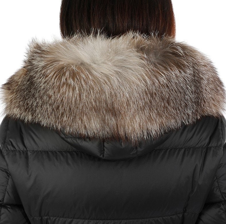 다운 코트의 포근한 후드에는 고급스러운 롱 헤어 쉽스킨 트리밍을 더했습니다.