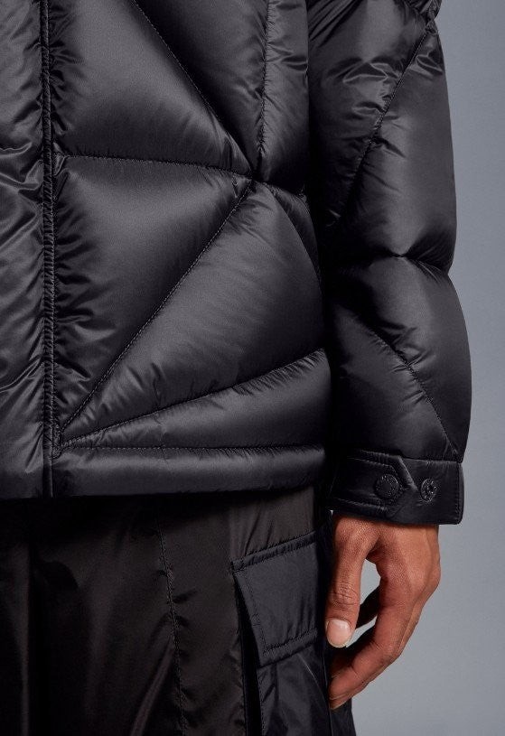 이 컬렉션의 일부인 이 재킷은 두꺼운 다운 충전재가 있는