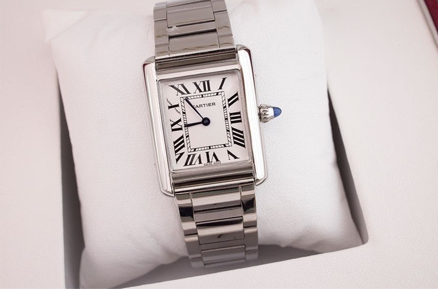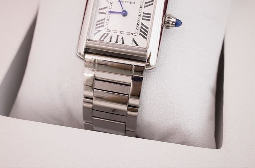 스틸 케이스, 카보숑형 합성 스피넬 1개를 세팅한 비즈 크라운,