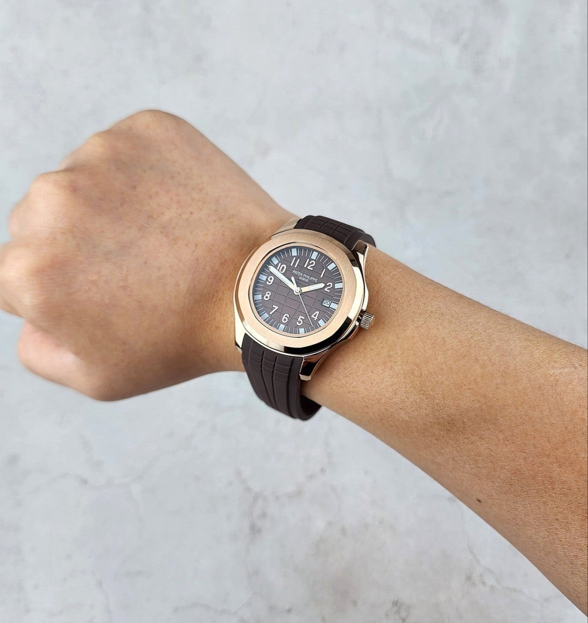 이번에 소개해드릴 시계는 파택필립 아쿠아넛 로즈골드 브라운다이얼 5167R 모델입니다.