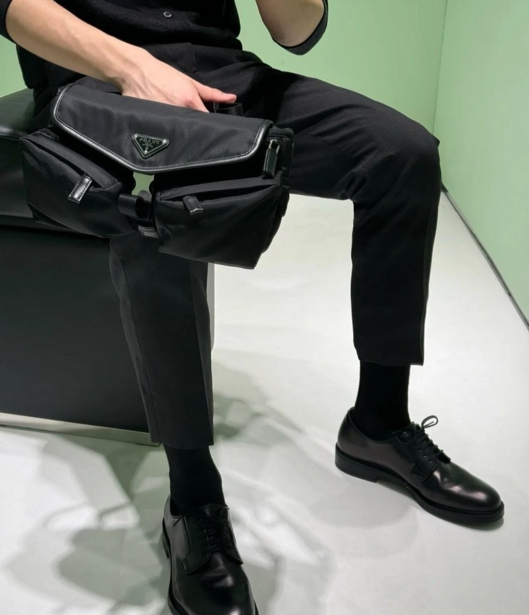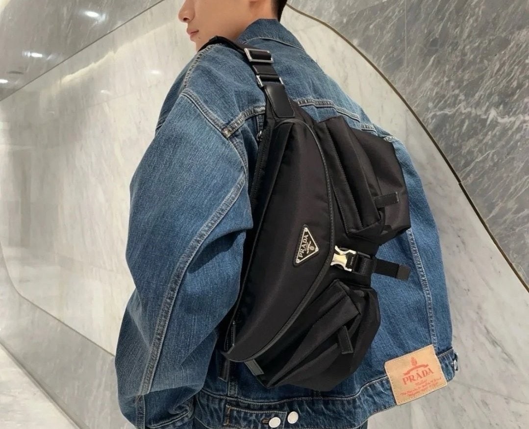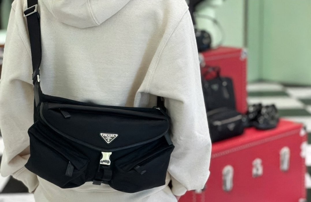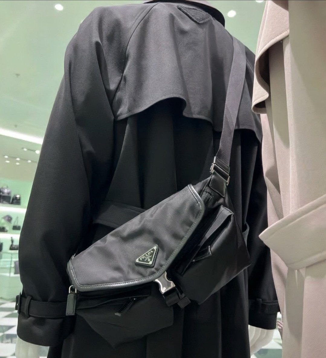 모던한 기하학적 라인과 프** 컬렉션 고유의 혁신적인 재생 나일론 패브릭인 리나일론의 부드러운 마감이 조화를 이룬 현대적인 매력의 숄더백입니다. 가죽 트림으로 장식된 컴팩트한 스타일로, 넉넉한 유틸리티 스타일 포켓과 측면 버클식 잠금장치 등 기능적이면서도 세련된 디테일이 돋보입니다. 크로스 바디로 착용할 수 있도록 맞춤 조절형 숄더 스트랩이 제공되며 에나멜 메탈 트라이앵글 로고의 디자인입니다.