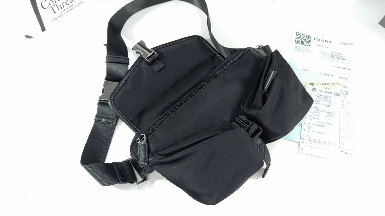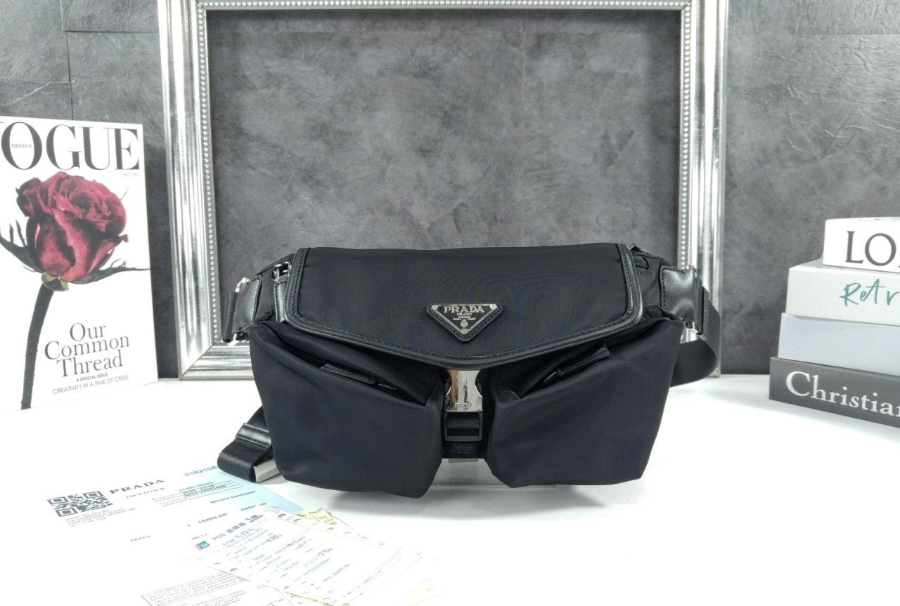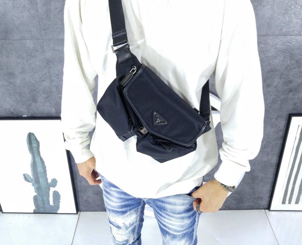 모던한 기하학적 라인과 프** 컬렉션 고유의 혁신적인 재생 나일론 패브릭인 리나일론의 부드러운 마감이 조화를 이룬 현대적인 매력의 숄더백입니다. 가죽 트림으로 장식된 컴팩트한 스타일로, 넉넉한 유틸리티 스타일 포켓과 측면 버클식 잠금장치 등 기능적이면서도 세련된 디테일이 돋보입니다. 크로스 바디로 착용할 수 있도록 맞춤 조절형 숄더 스트랩이 제공되며 에나멜 메탈 트라이앵글 로고의 디자인입니다.