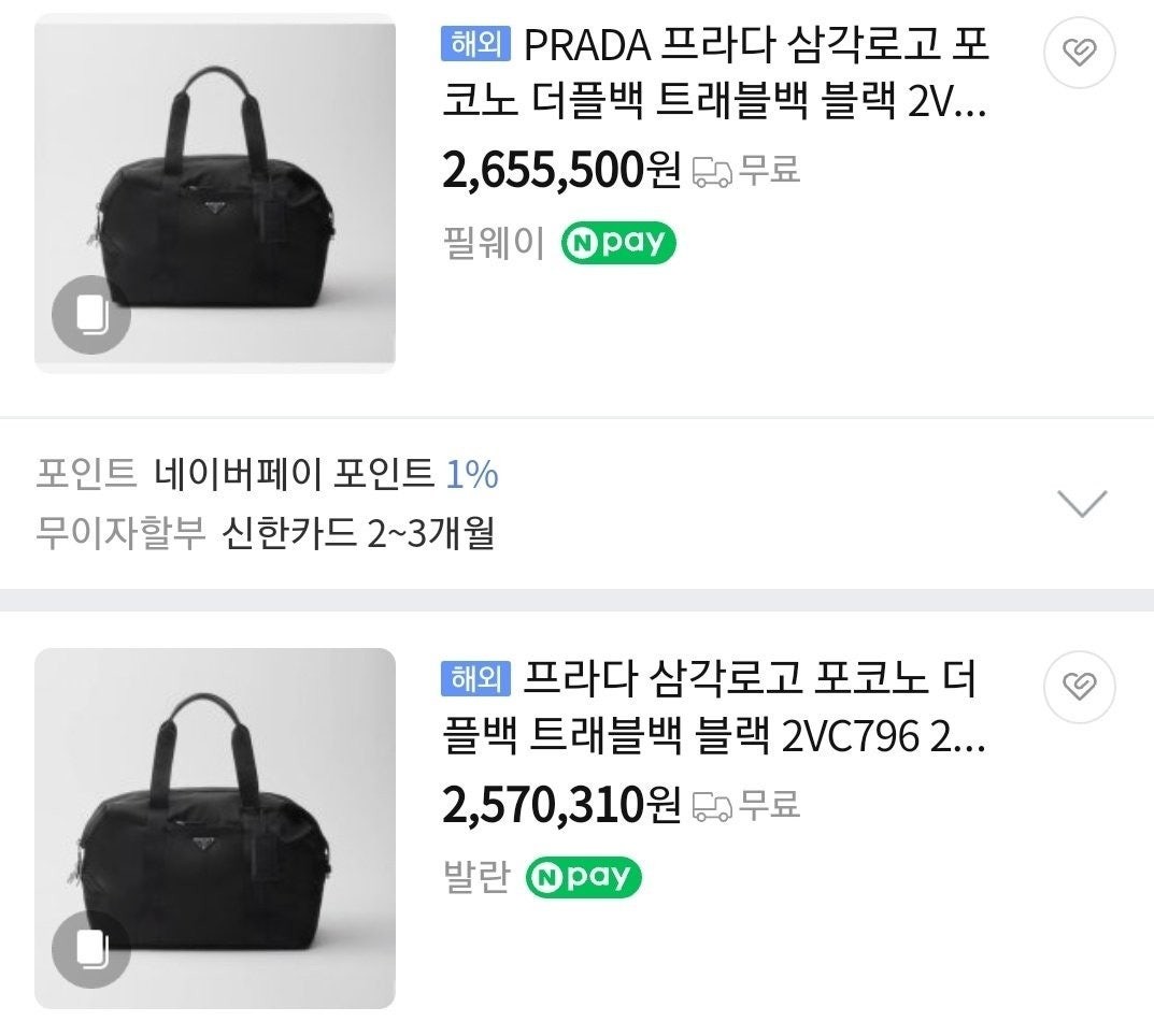 프** 더플백 삼각 로고 트래블 백 블랙 2VC796 2DMH F0002 요약정보 및 구매
