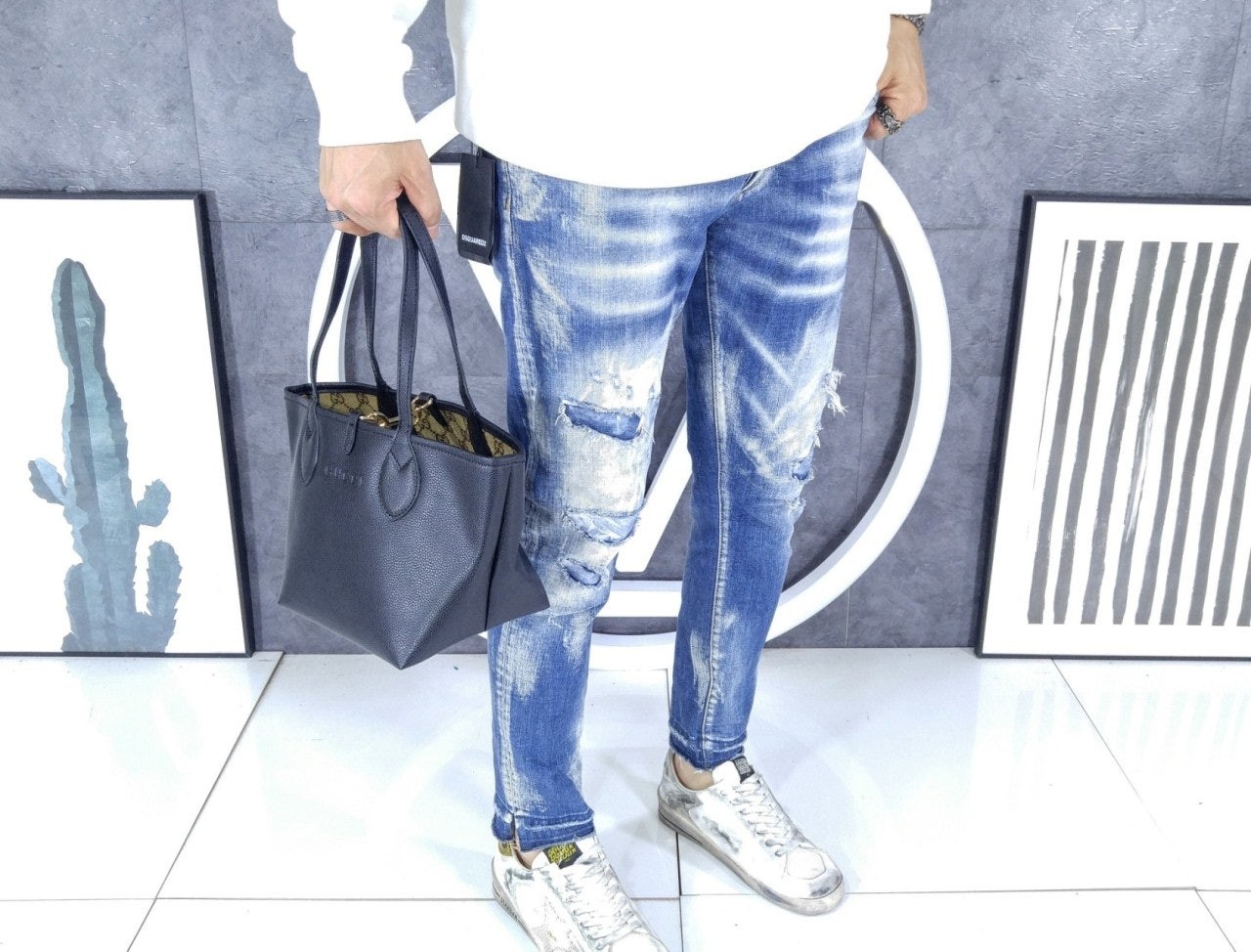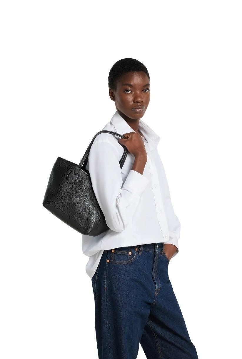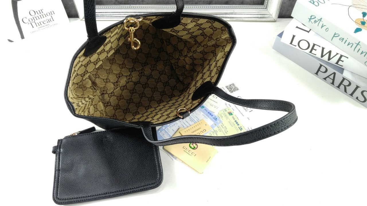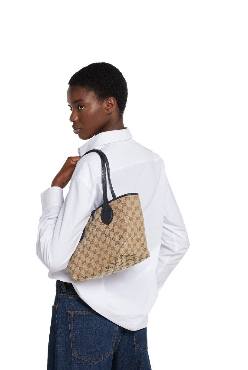 한쪽 면은 그레이니 레더, 반대쪽 면은 GG 캔버스로 제작하여 하나의 백으로 두 가지 독특한 스타일을 선보이는 리버서블 스타일의 구* 토티시마. 토티시마라는 이름은 한결같은 스타일과 기능성을 강조합니다.
